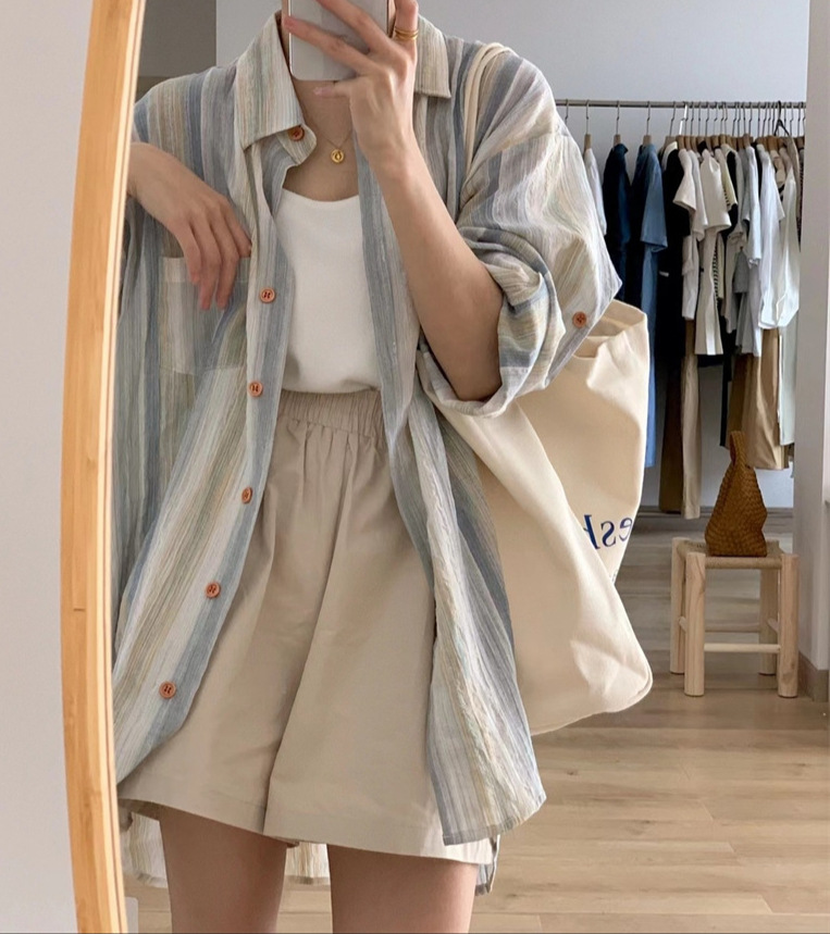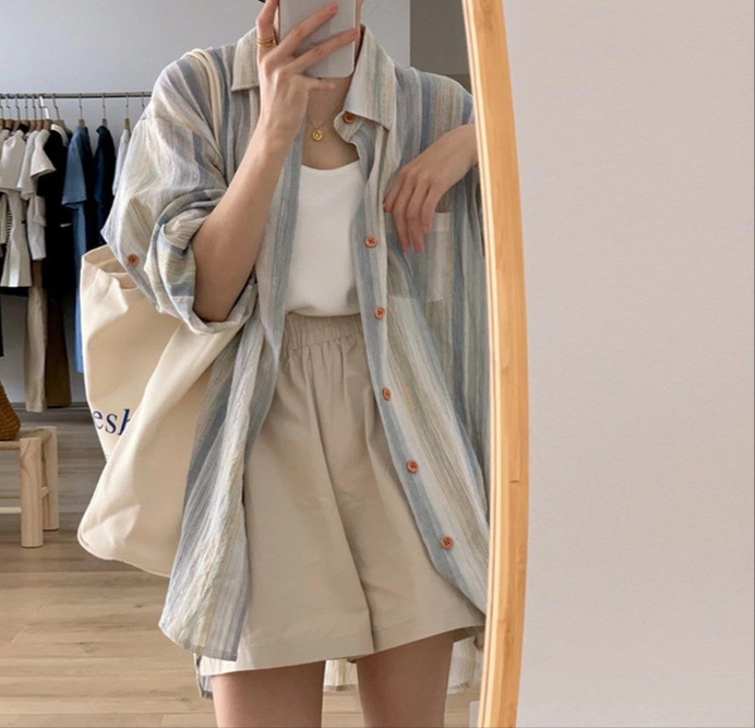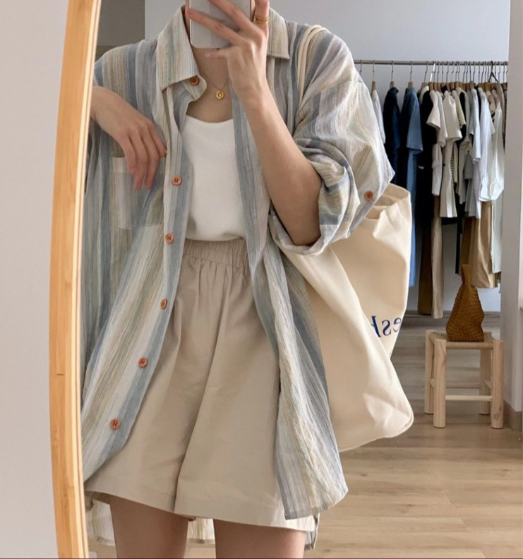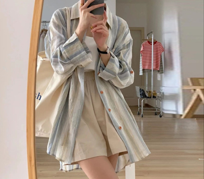선스크린 셔츠 스트라이프 긴 소매 2025 새로운 스타일 아우터 탑 셔츠 에어컨 카디건 재킷 얇은 여성스토어 가기