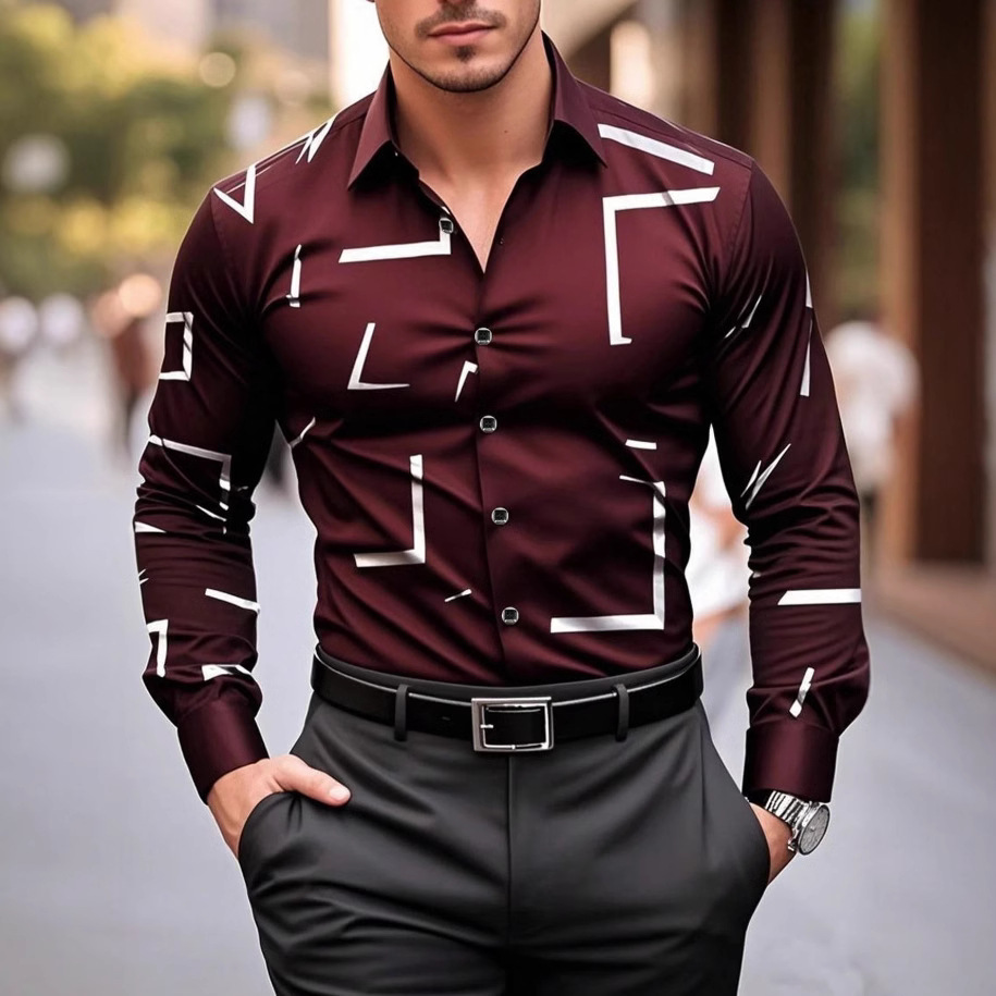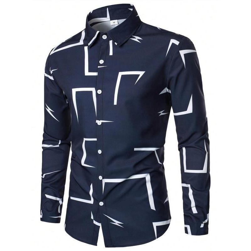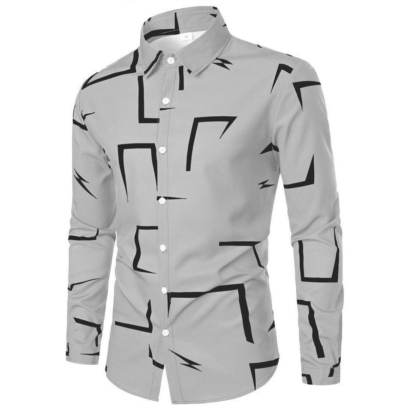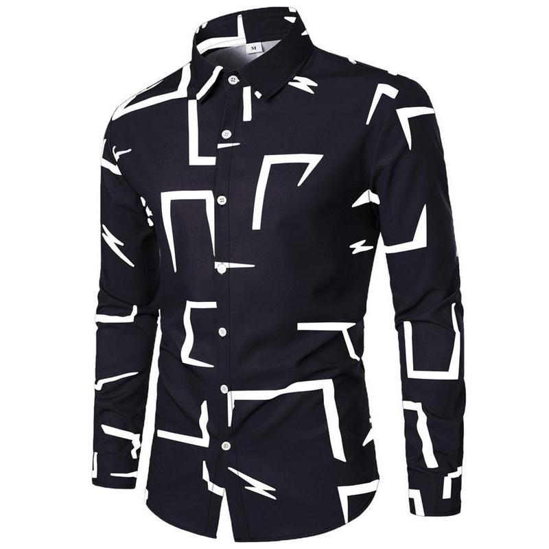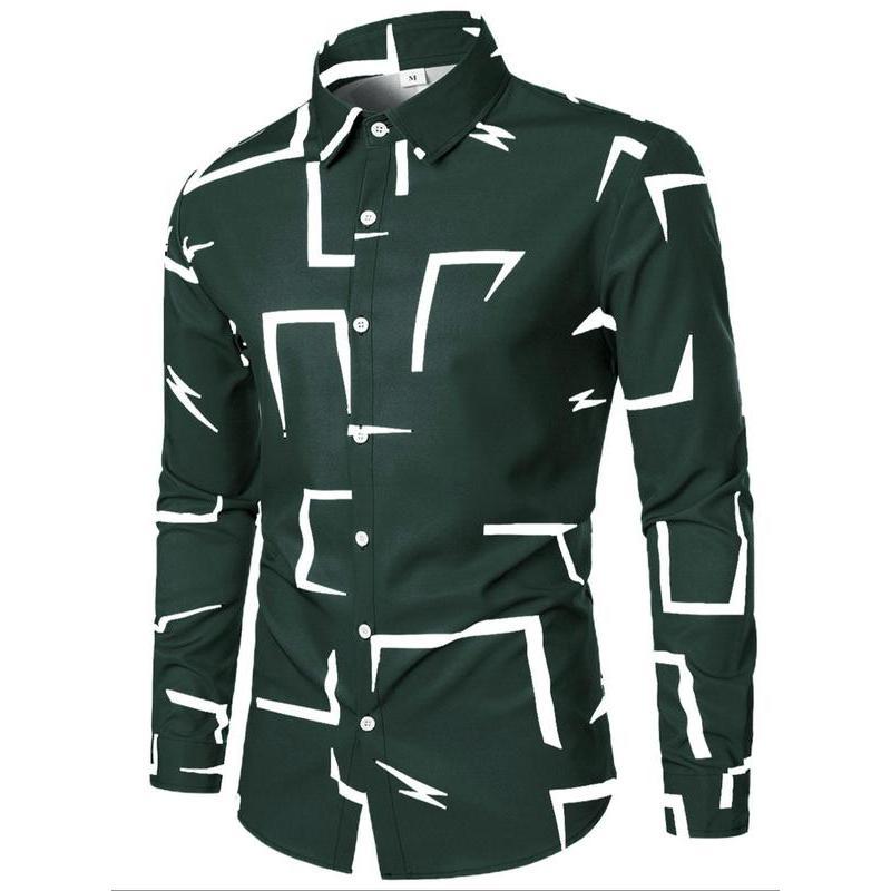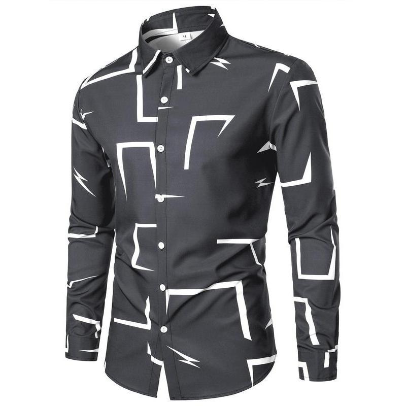 남성 셔츠 크로스 보더 남자 뉴 불규칙한 4 면 인쇄 캐주얼 셔츠 봄과 가을 셔츠 남자의 긴 소매