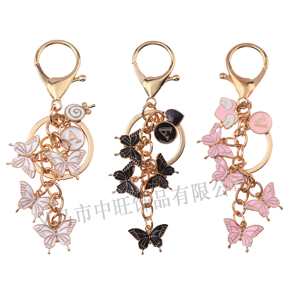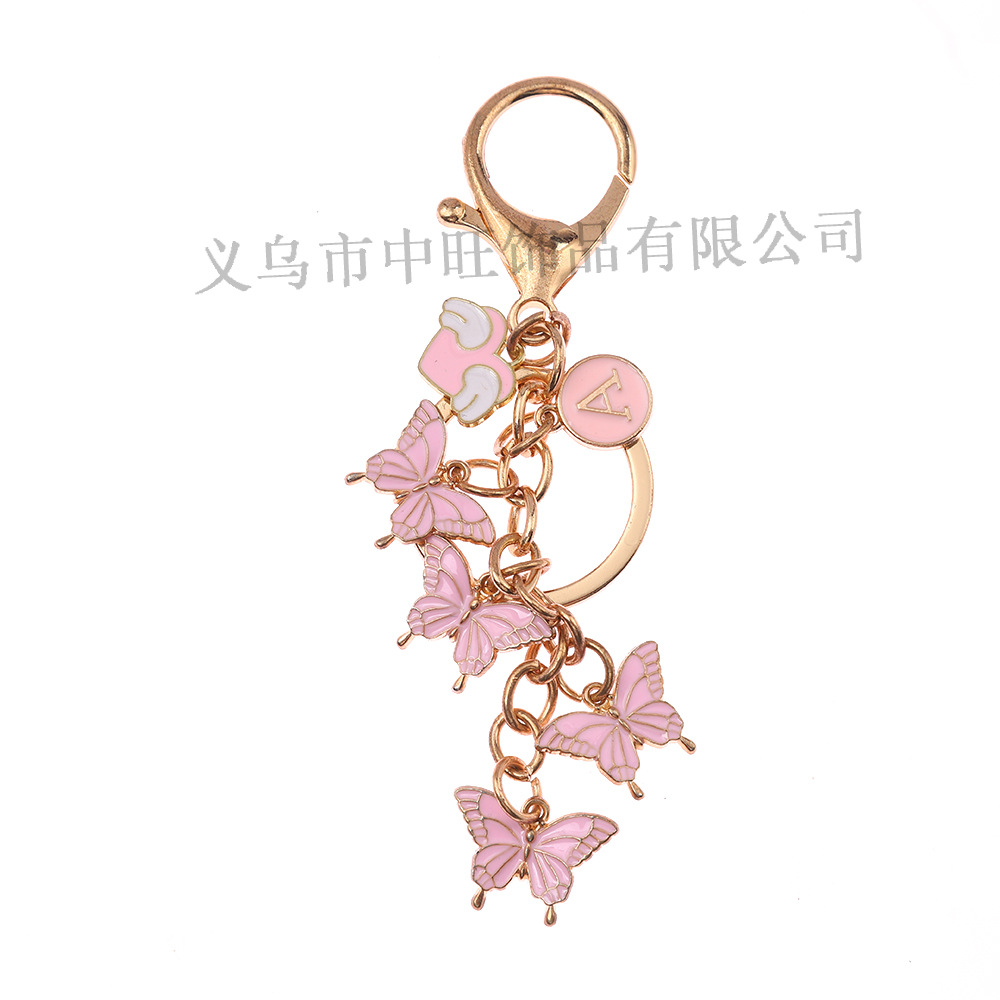 국경 도매 유럽과 미국의 패션 합금 오일 드롭 문자 나비 키 체인 절묘한 아름다운 컬러 펜던트 키 체인