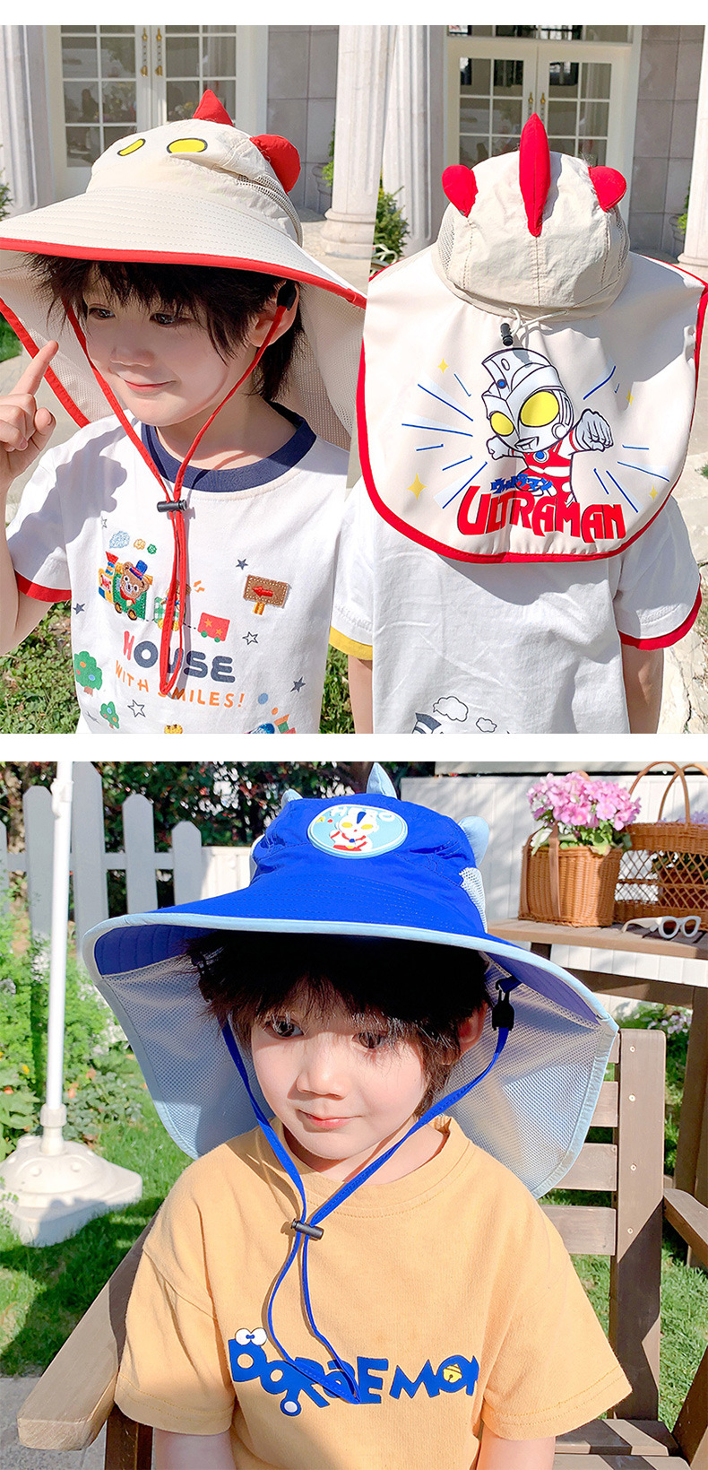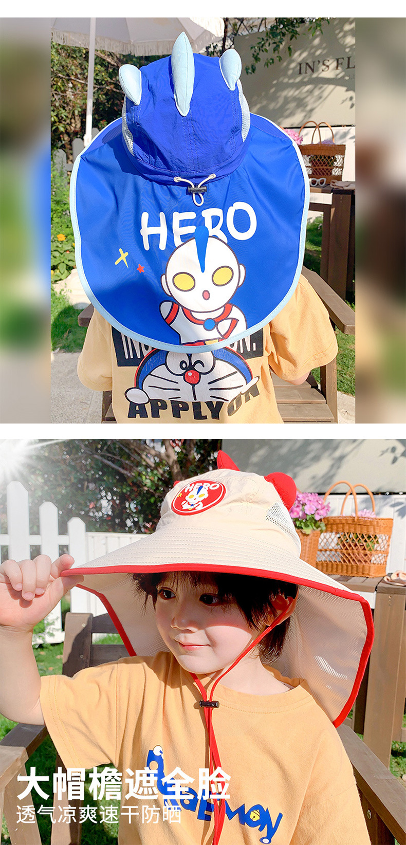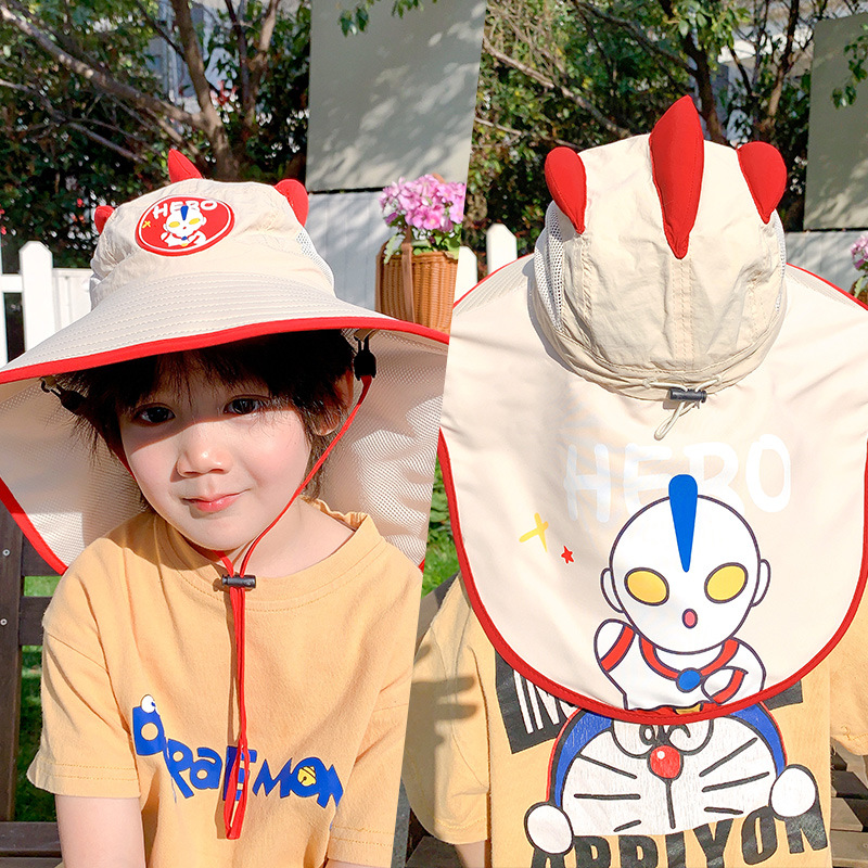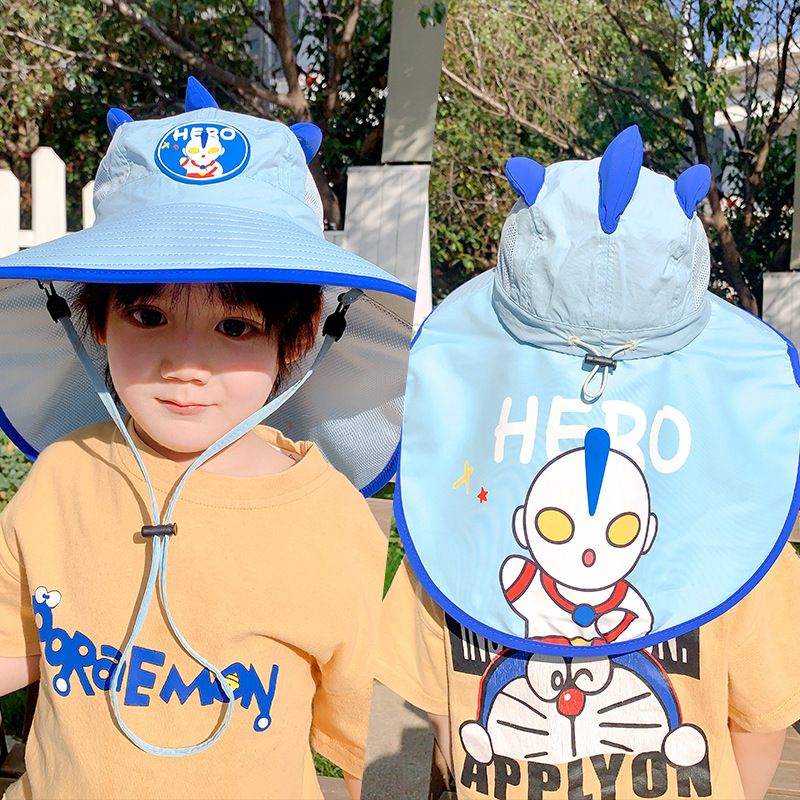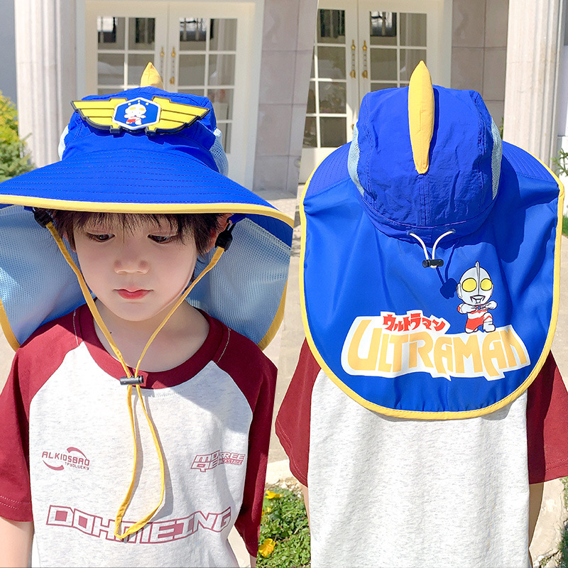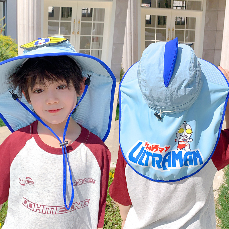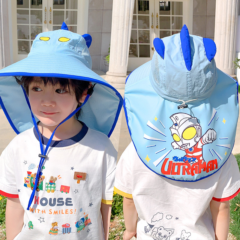울트라 맨 소년의 태양 보호 모자 목도리 여름 어린이 태양 모자 어린 소년을위한 빠른 건조 통기성 UV 보호