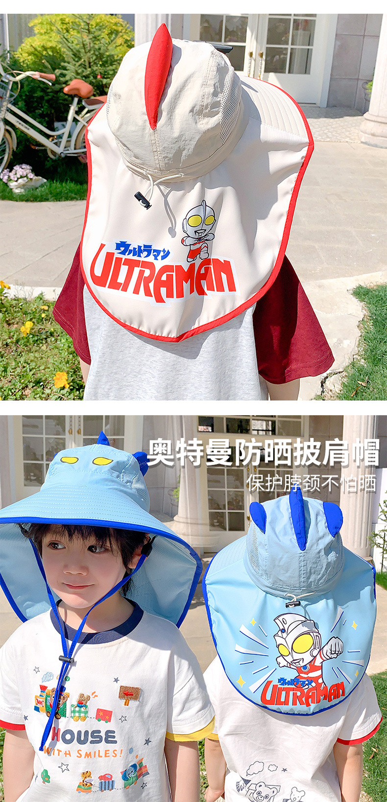 • 1#울트라맨 숄 모자 스타일 A-라이트 블루 3-12세