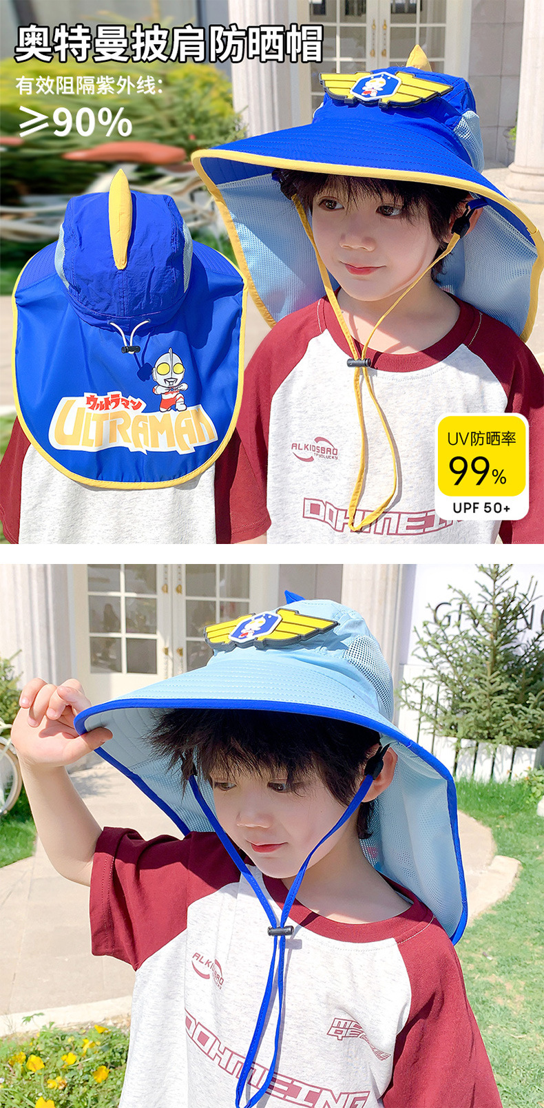 • 7#울트라맨 숄 모자 스타일 C-사파이어 블루 3-12세