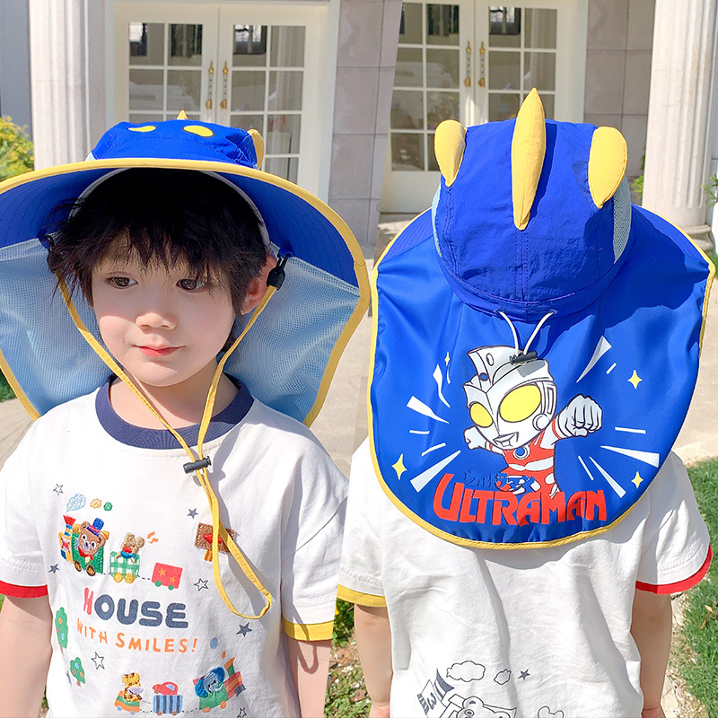 울트라 맨 소년의 태양 보호 모자 목도리 여름 어린이 태양 모자 어린 소년을위한 빠른 건조 통기성 UV 보호스토어 가기