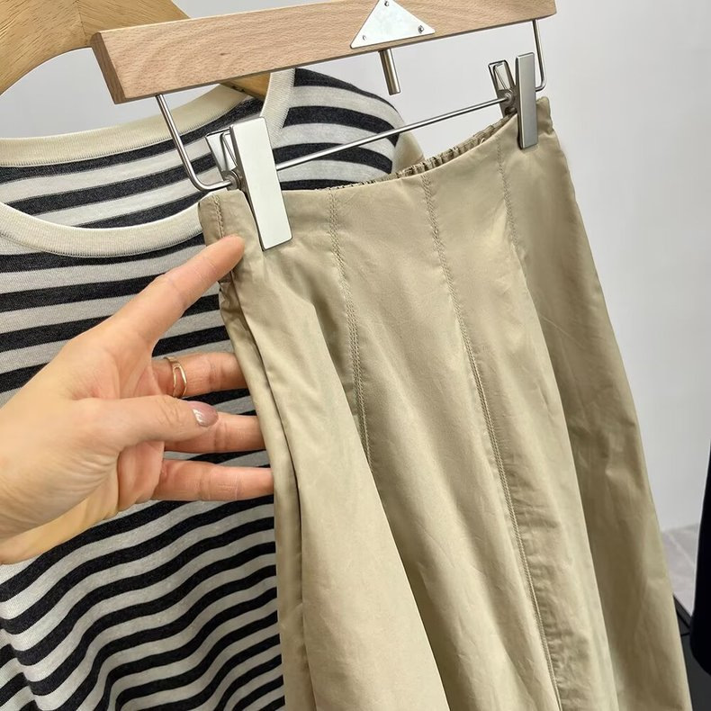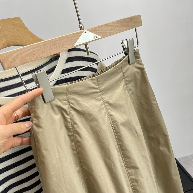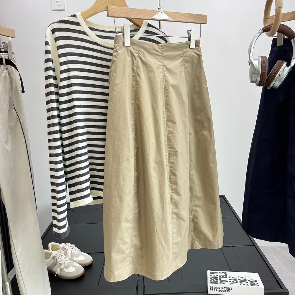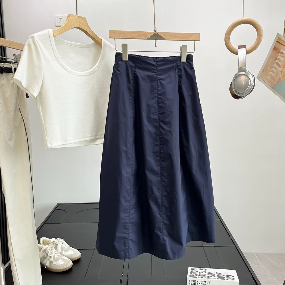 프랑스 편안한 높은 허리 팔꿈치 슬리밍 A 라인 스커트 여성의 봄과 여름 우아한 올 매치 미디 원피스 474956
