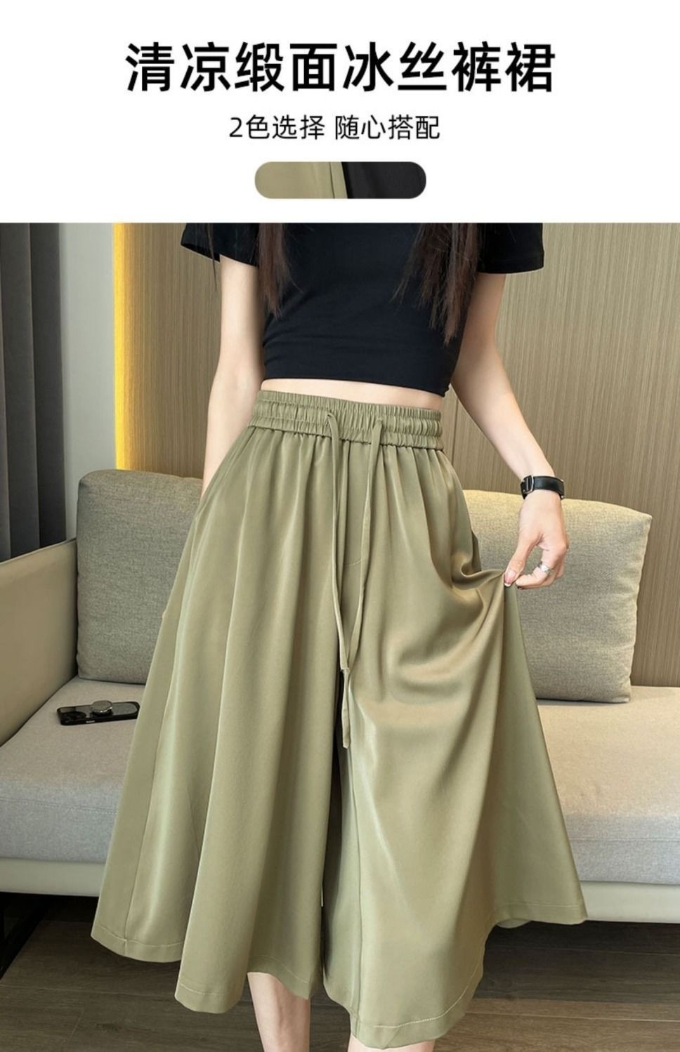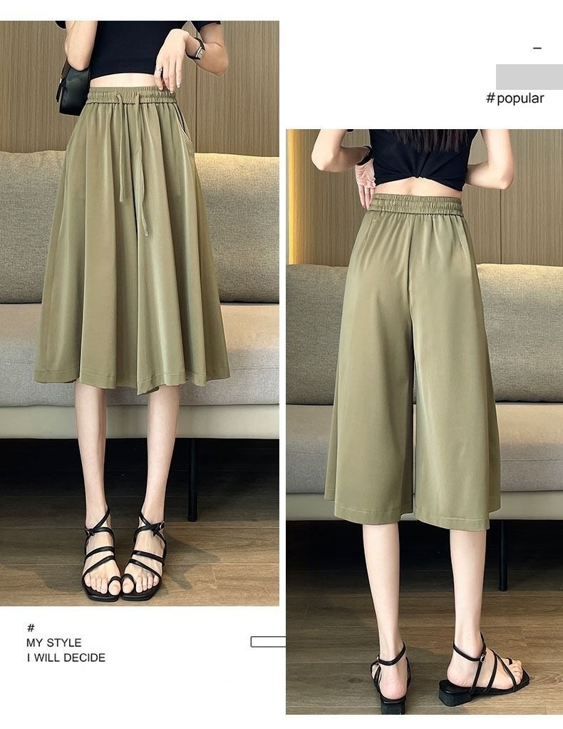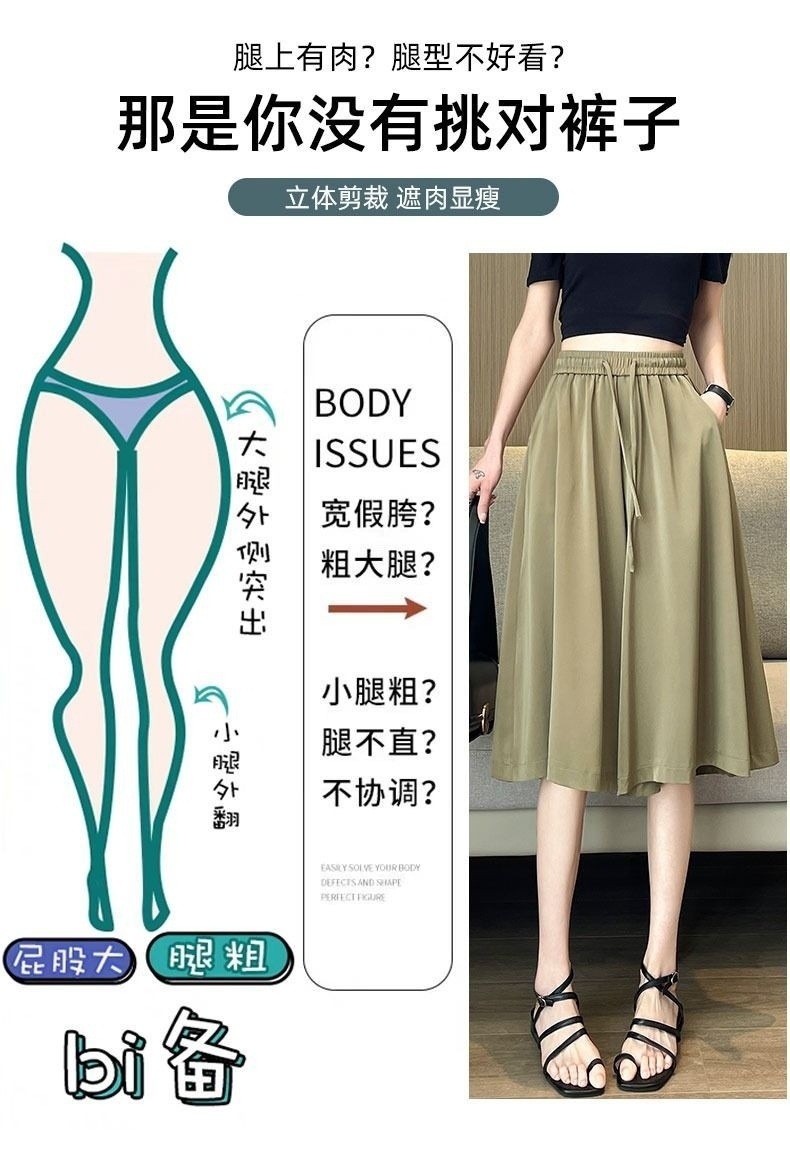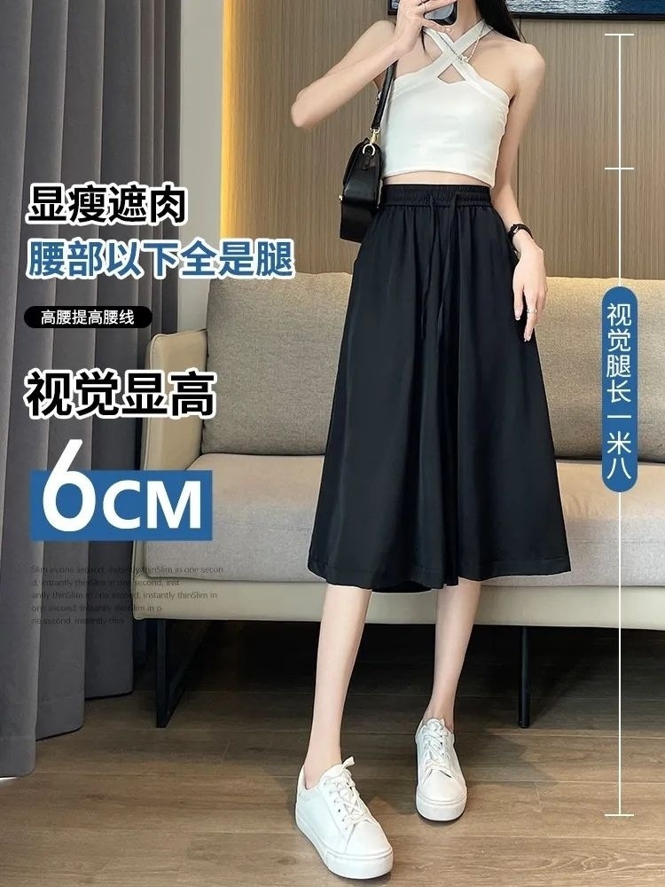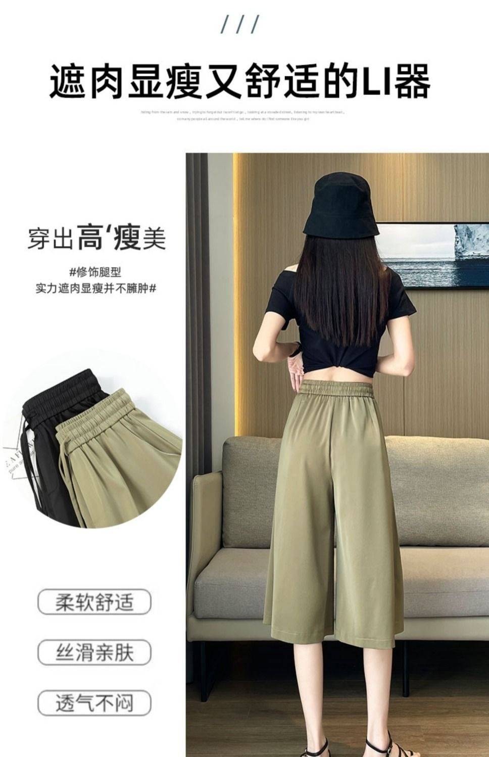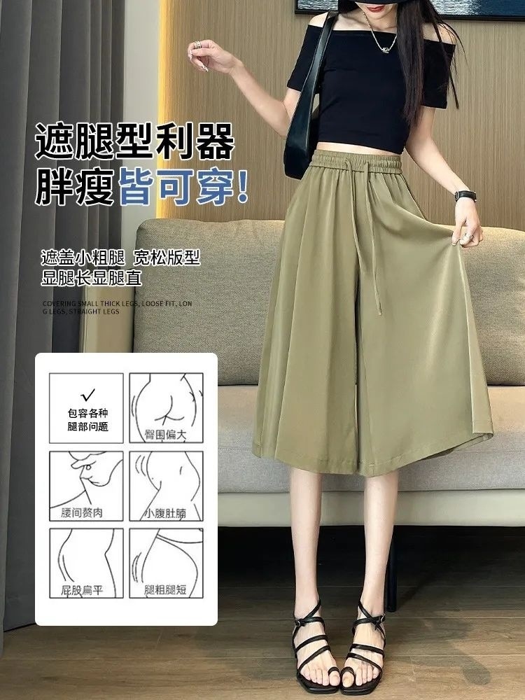 넓은 다리 아이스 실크 카프리 바지 여자 여름 얇은 플러스 사이즈 지방 느슨한 높은 허리 슬리밍 캐주얼 바지 스커트 스포츠 바지스토어 가기