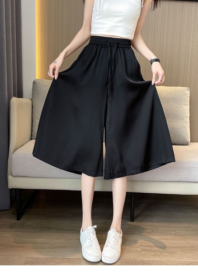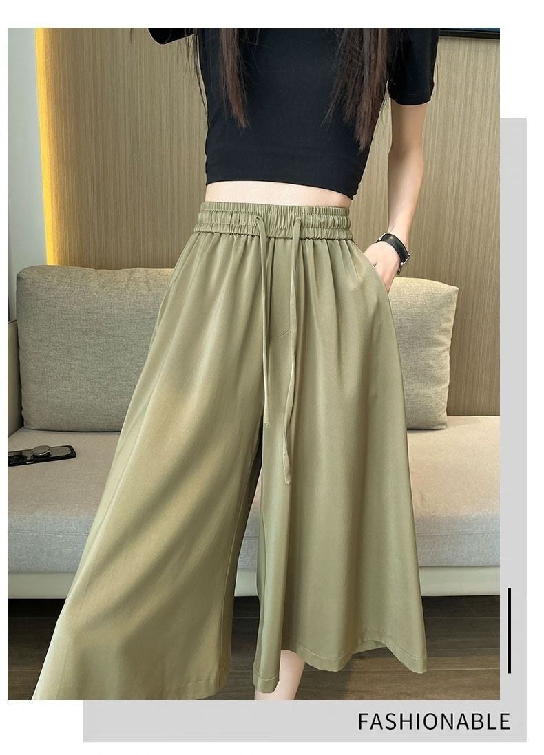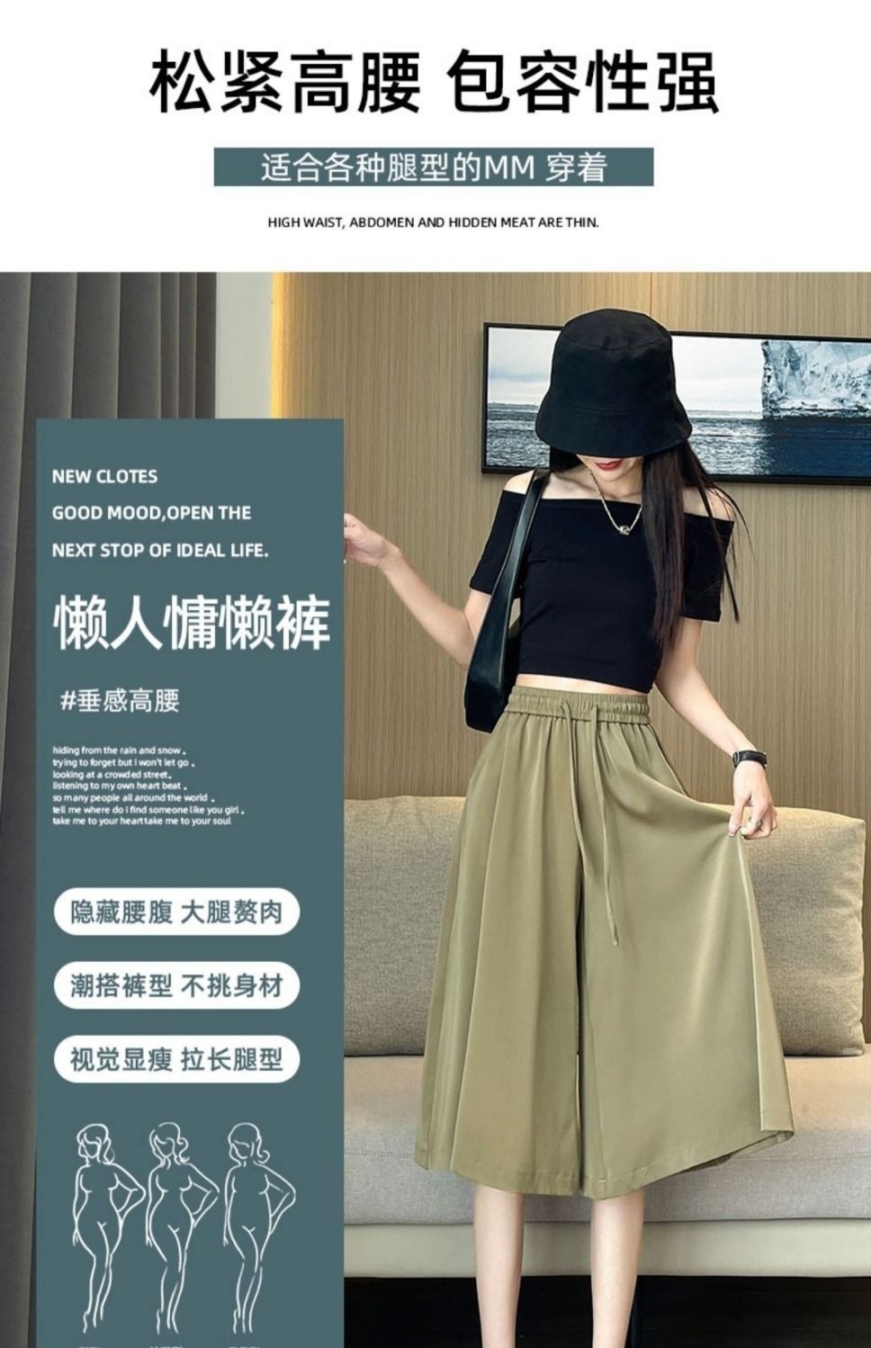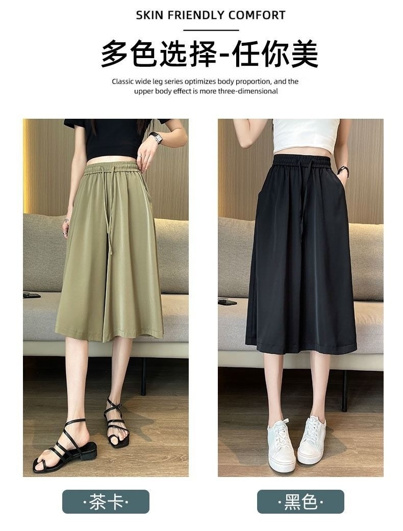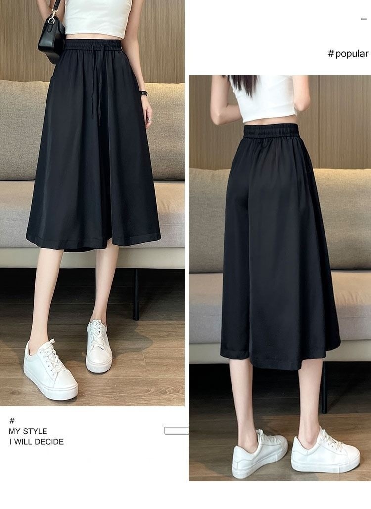 넓은 다리 아이스 실크 카프리 바지 여자 여름 얇은 플러스 사이즈 지방 느슨한 높은 허리 슬리밍 캐주얼 바지 스커트 스포츠 바지스토어 가기