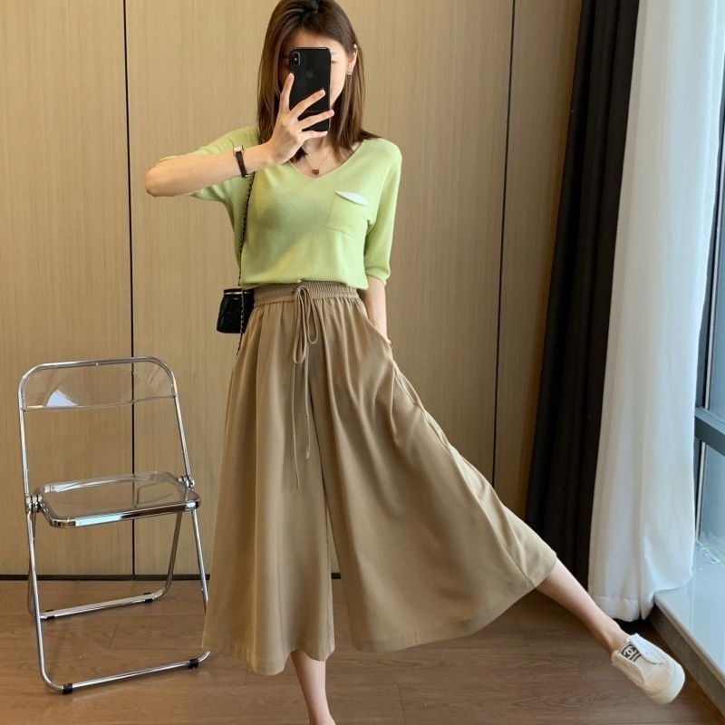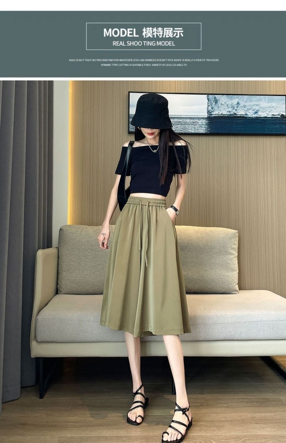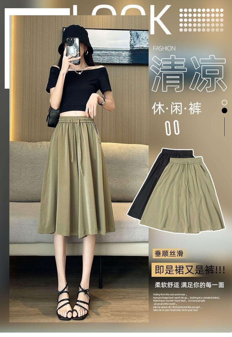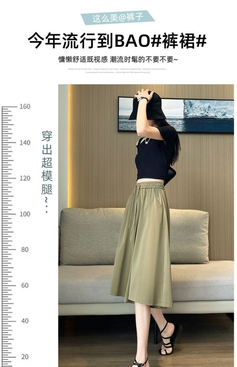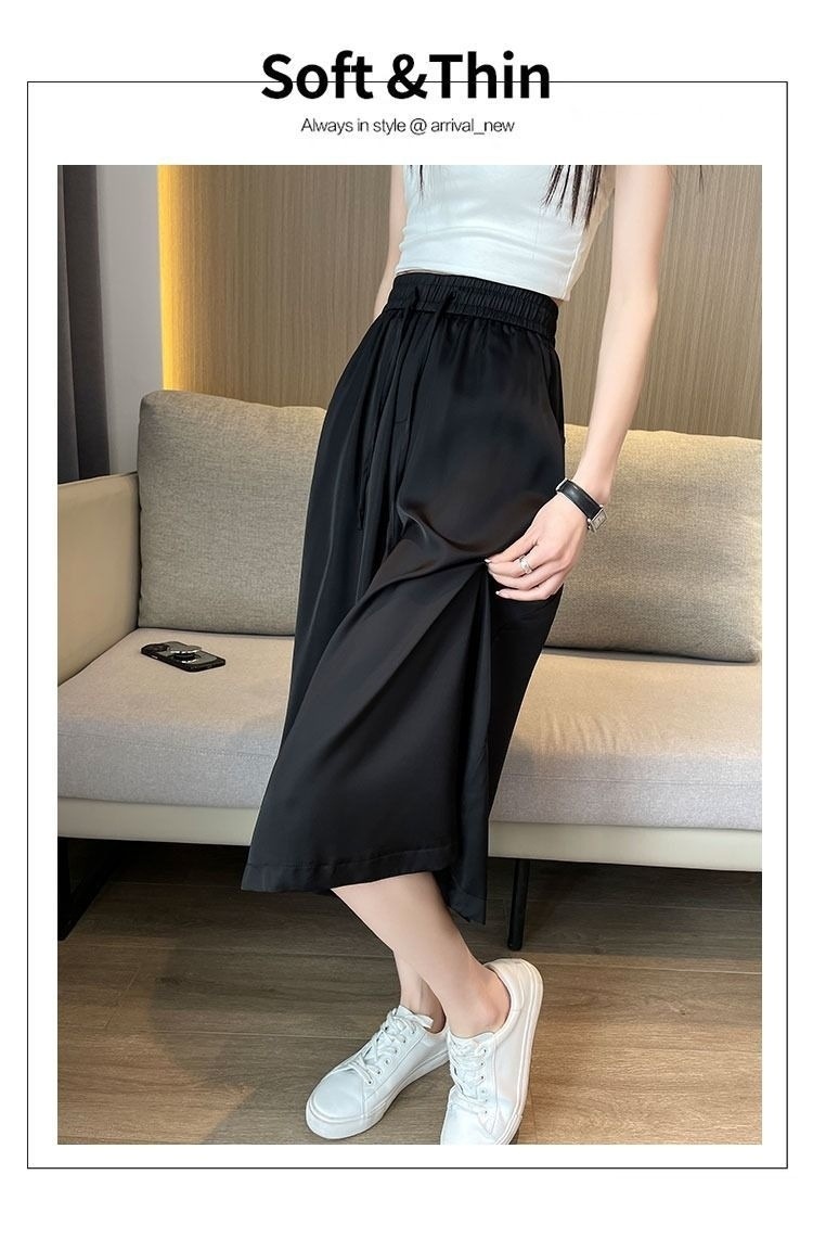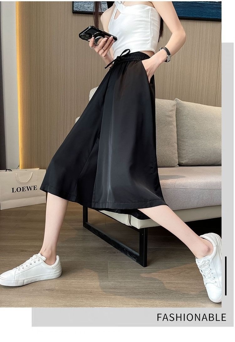 넓은 다리 아이스 실크 카프리 바지 여자 여름 얇은 플러스 사이즈 지방 느슨한 높은 허리 슬리밍 캐주얼 바지 스커트 스포츠 바지스토어 가기