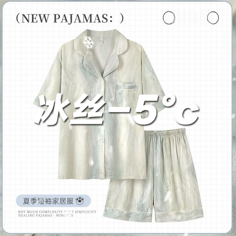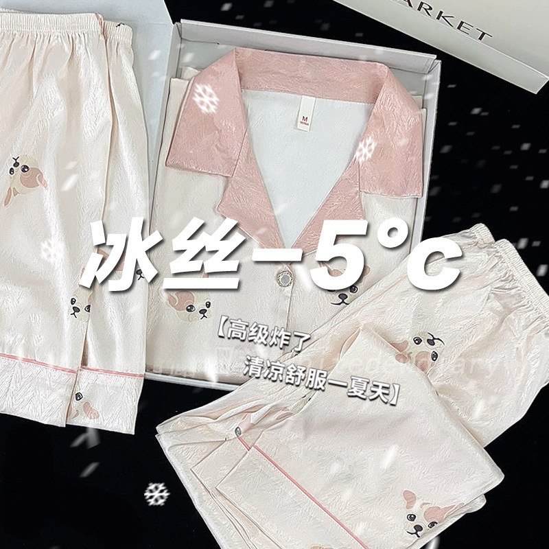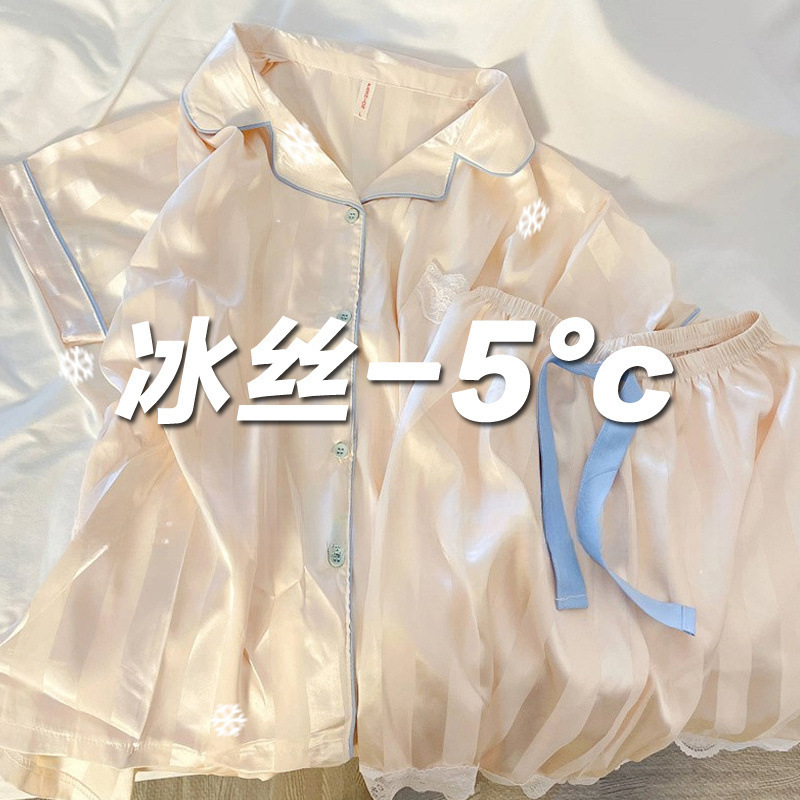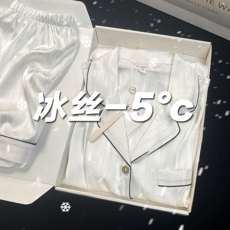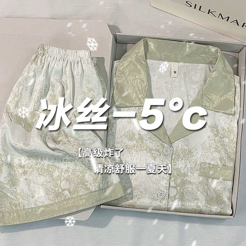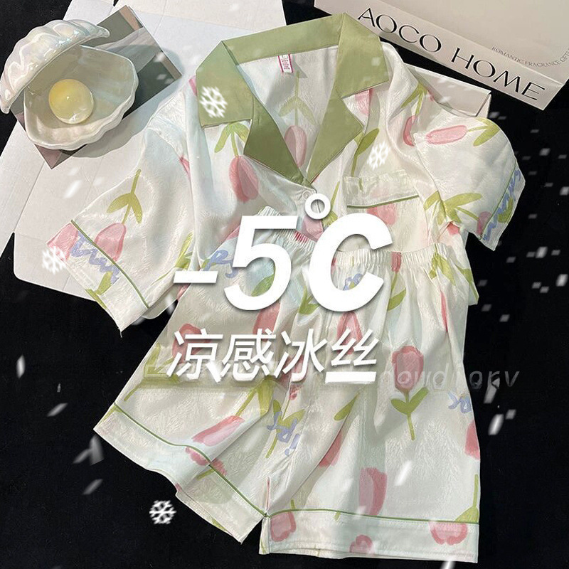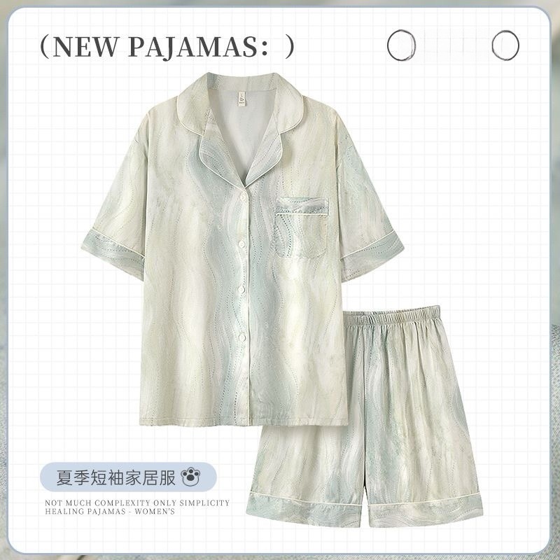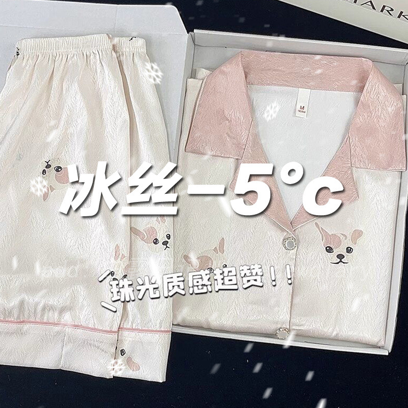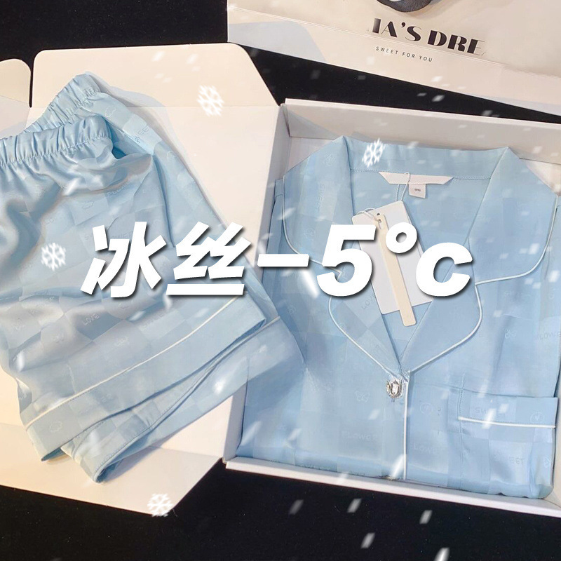 아이스 실크 파자마 여성 여름 반팔 바지 얇은 하이 엔드 인터넷 인기 Ins 플러스 사이즈 홈 의류스토어 가기
