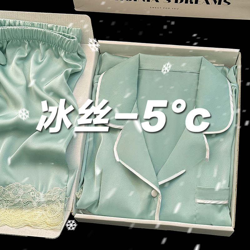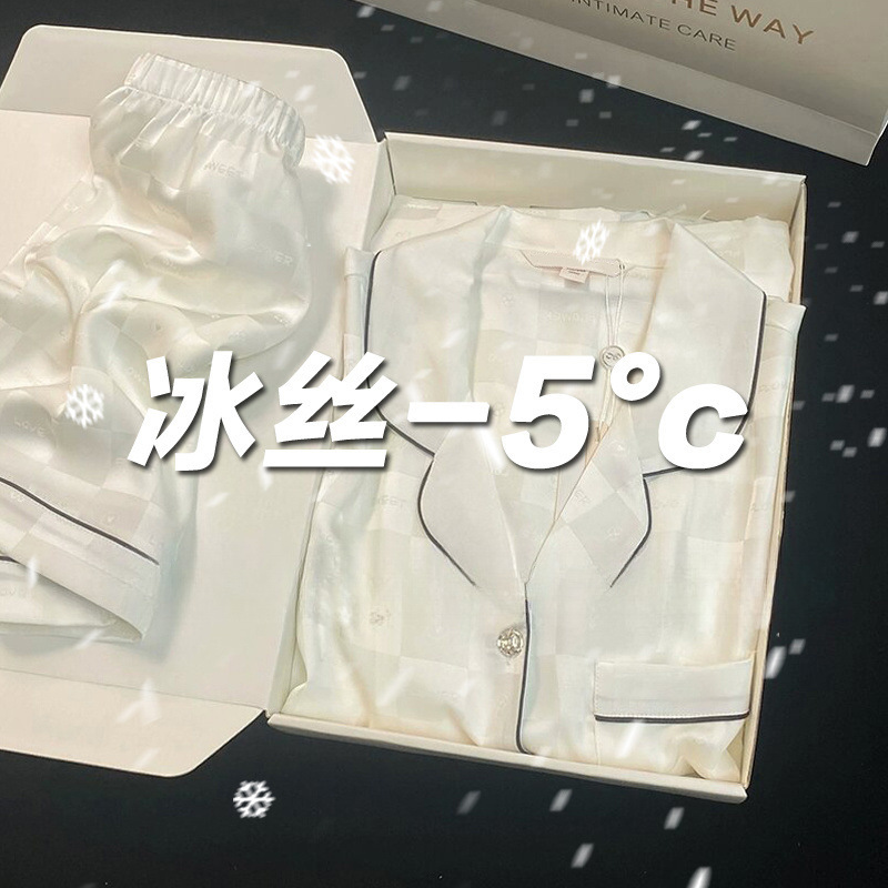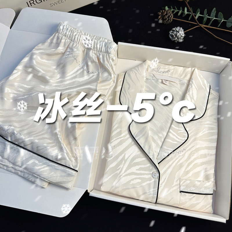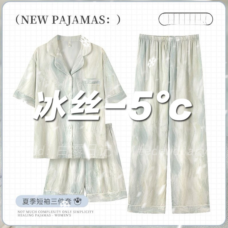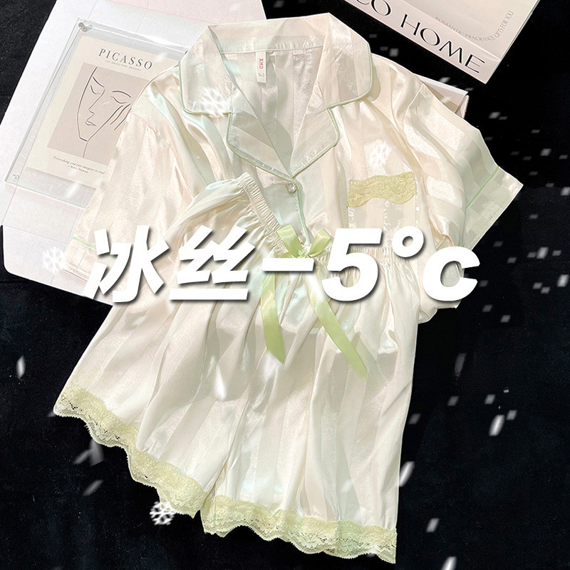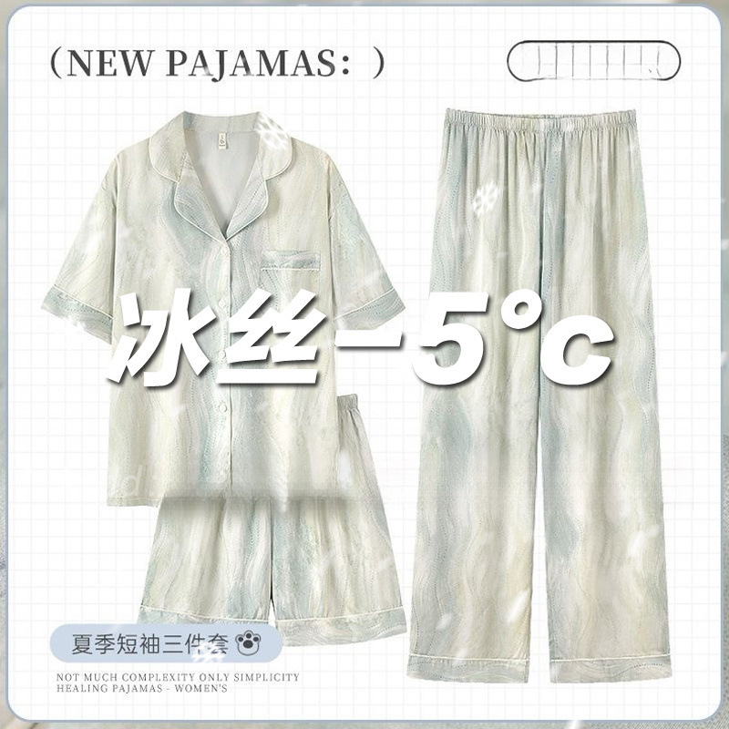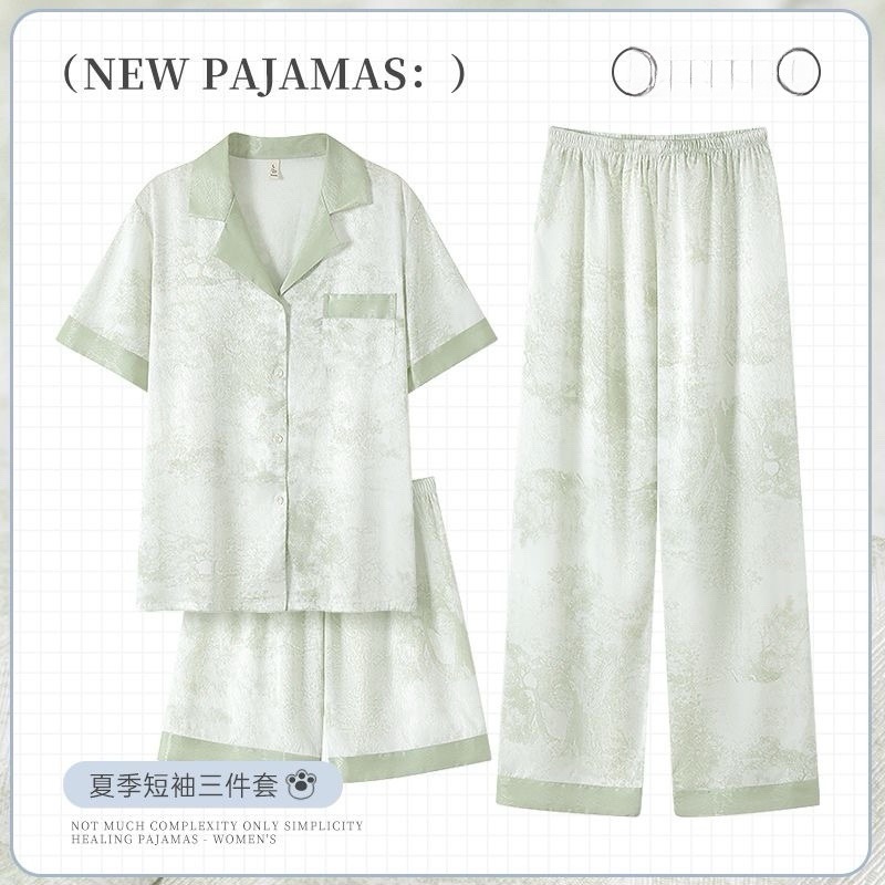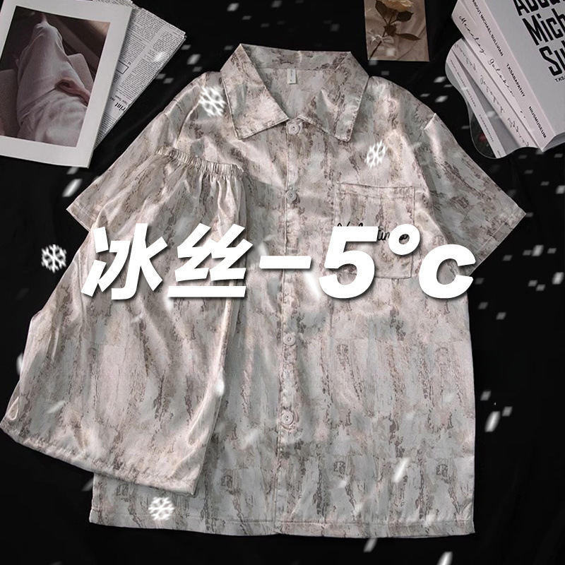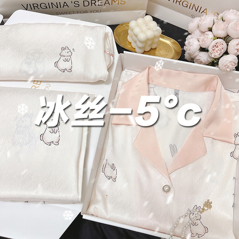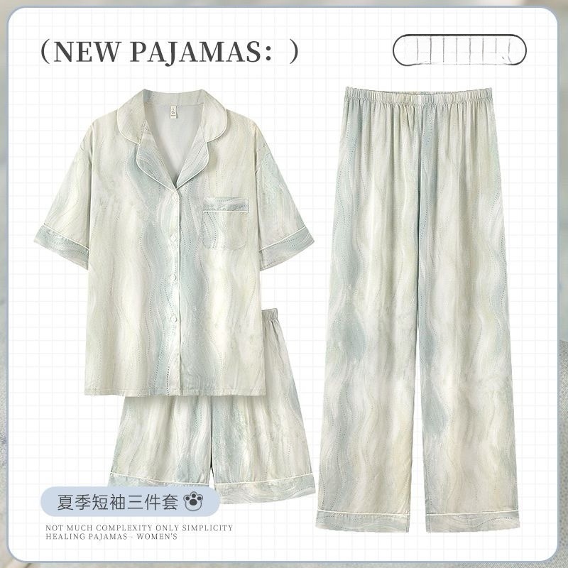 아이스 실크 파자마 여성 여름 반팔 바지 얇은 하이 엔드 인터넷 인기 Ins 플러스 사이즈 홈 의류스토어 가기