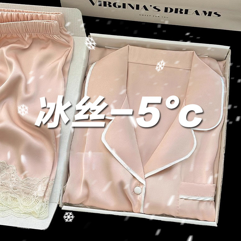 아이스 실크 파자마 여성 여름 반팔 바지 얇은 하이 엔드 인터넷 인기 Ins 플러스 사이즈 홈 의류