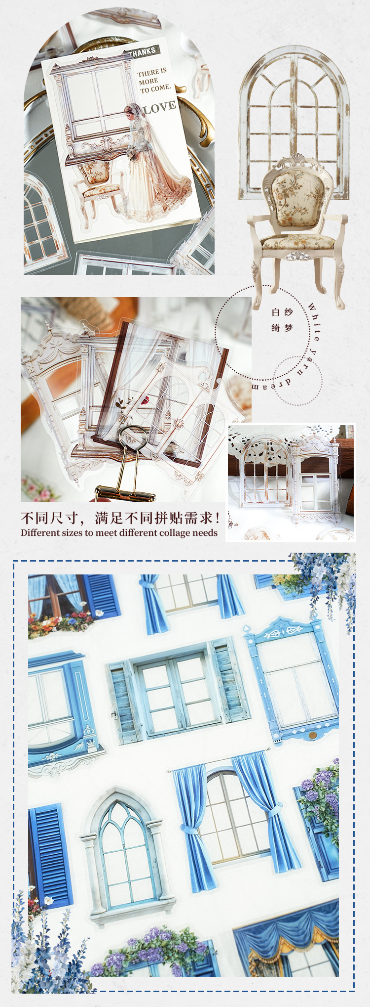 이탈리아 새 스티커 흰색 창 거짓말 풍경 시리즈 유럽 복고풍 손 계정 diy 장식 소재 스티커