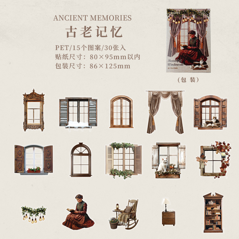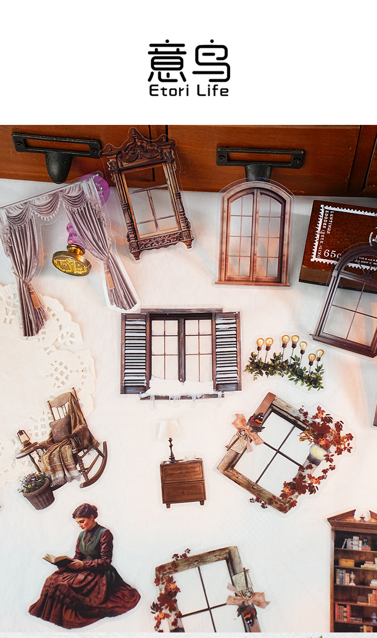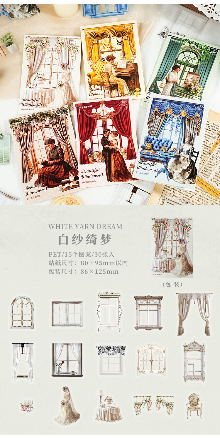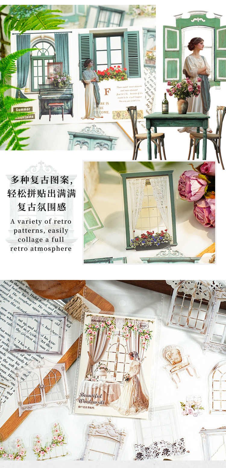 이탈리아 새 스티커 흰색 창 거짓말 풍경 시리즈 유럽 복고풍 손 계정 diy 장식 소재 스티커스토어 가기