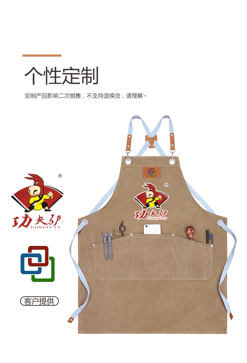 대외 무역용 두꺼운 캔버스 앞치마, 주방, 식당, 커피숍용 다용도 포켓 작업 앞치마, 맞춤형 로고 가능