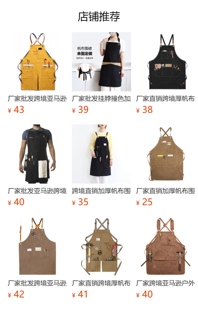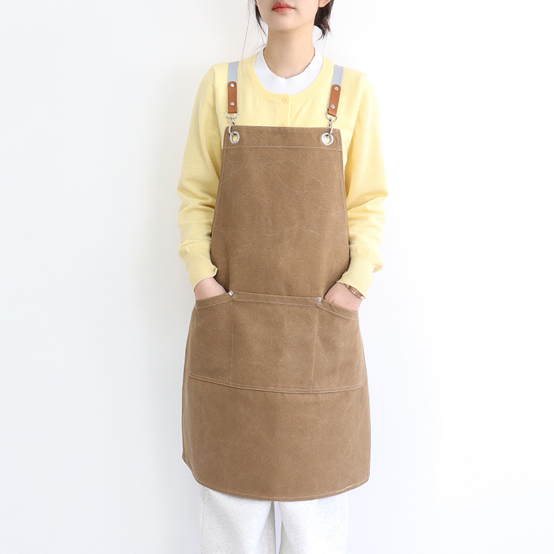 대외 무역용 두꺼운 캔버스 앞치마, 주방, 식당, 커피숍용 다용도 포켓 작업 앞치마, 맞춤형 로고 가능스토어 가기