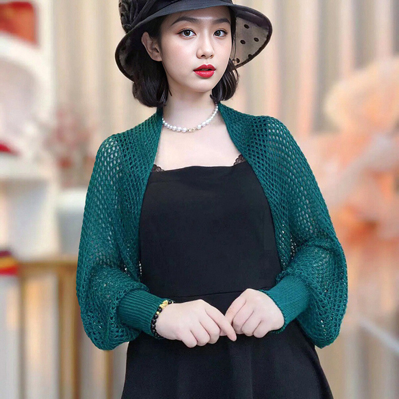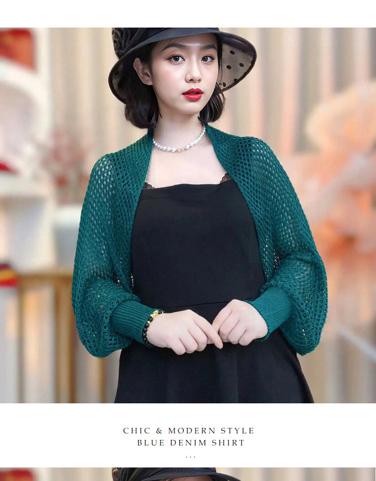 • 메쉬 슬리브 숄 그린 아이스 실크 코튼 부드럽고 피부 친화적인