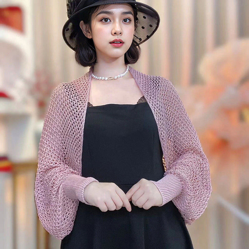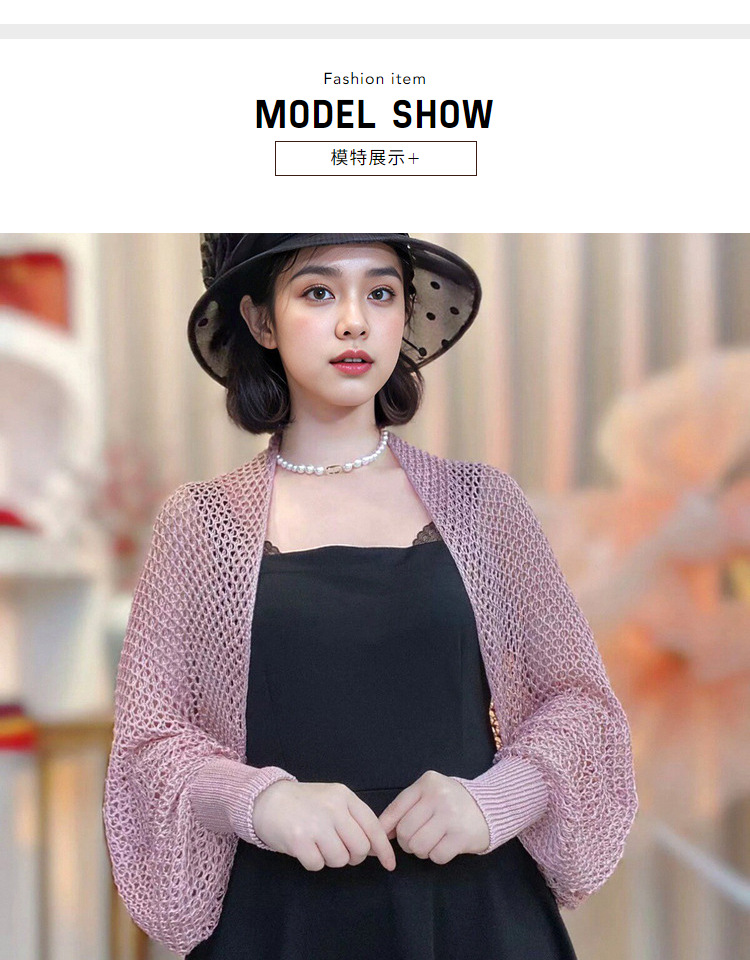 • 메쉬 슬리브 숄 핑크 아이스 실크 코튼 부드럽고 피부 친화적인