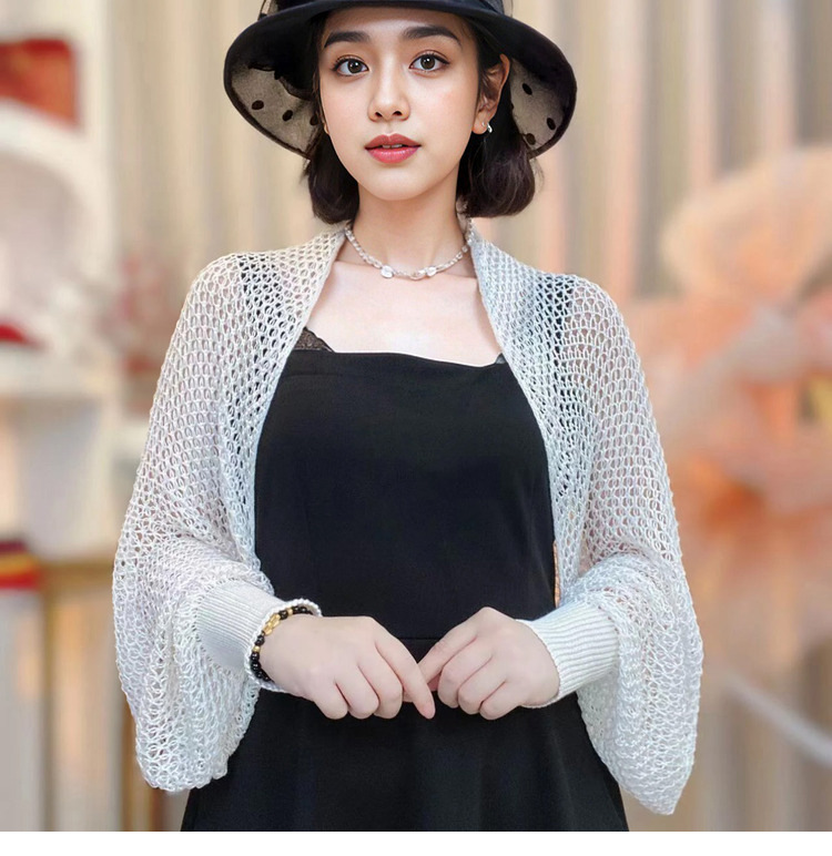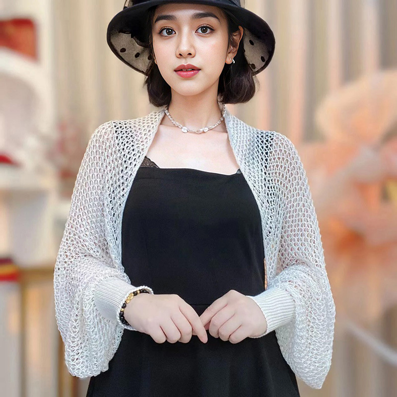 • 메쉬 슬리브 숄 화이트 아이스 실크 코튼 부드럽고 피부 친화적인
