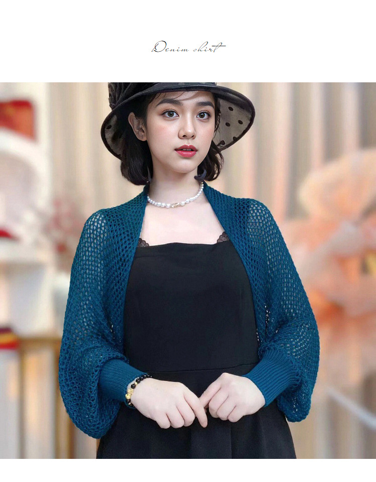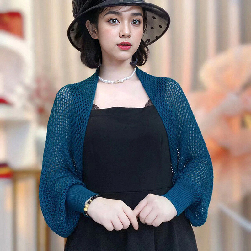 • 메쉬 슬리브 숄 로얄 블루 아이스 실크 코튼 부드럽고 피부 친화적인