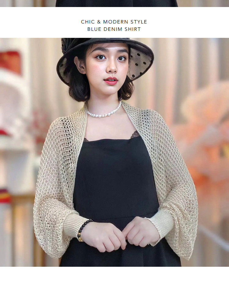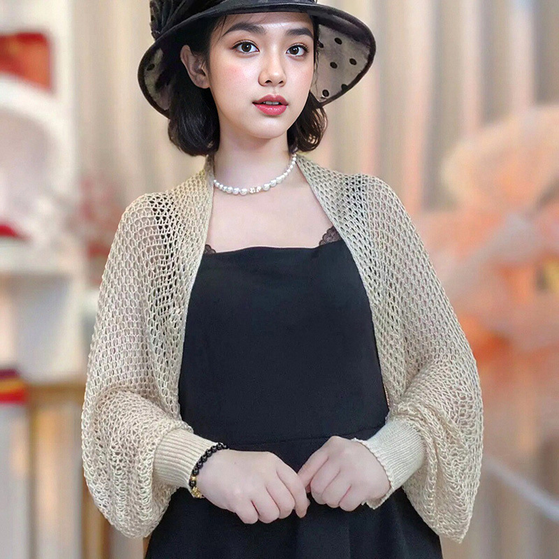 • 메쉬 슬리브 숄, 베이지 아이스 실크 코튼, 부드럽고 피부 친화적인