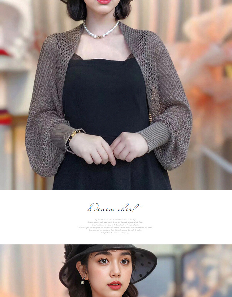 • 메쉬 슬리브 숄, 카키 아이스 실크 코튼, 부드럽고 피부 친화적인