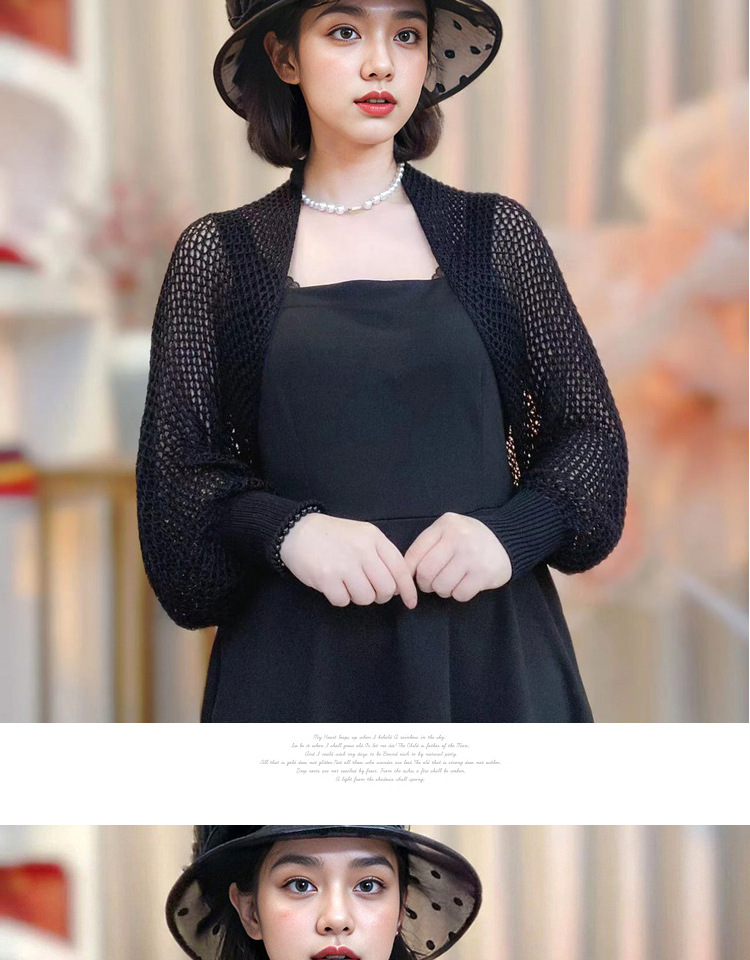 • 메쉬 슬리브 숄 블랙 아이스 실크 코튼 부드럽고 피부 친화적인