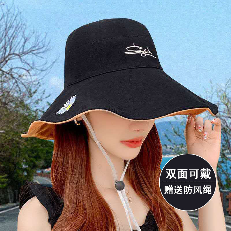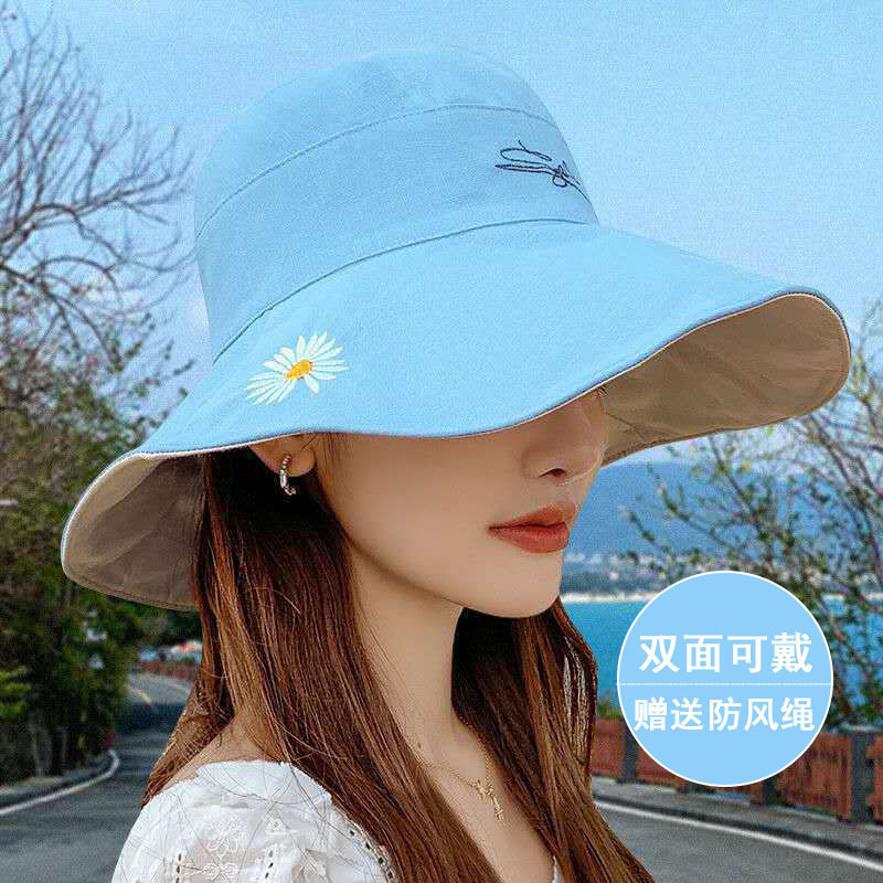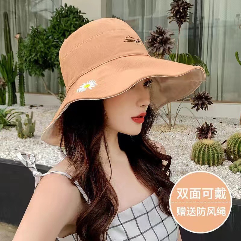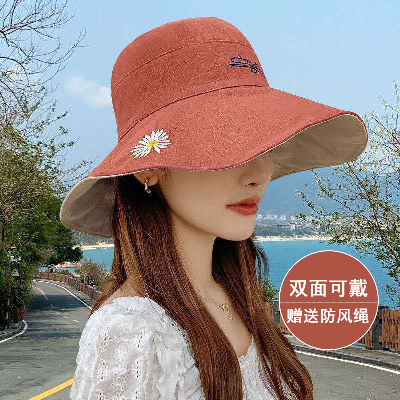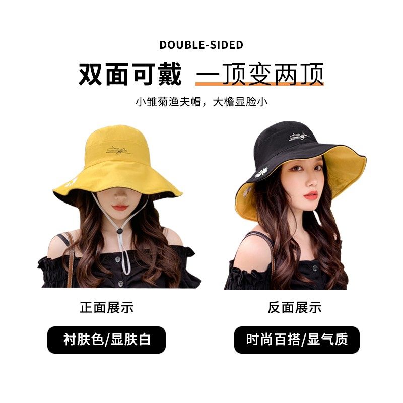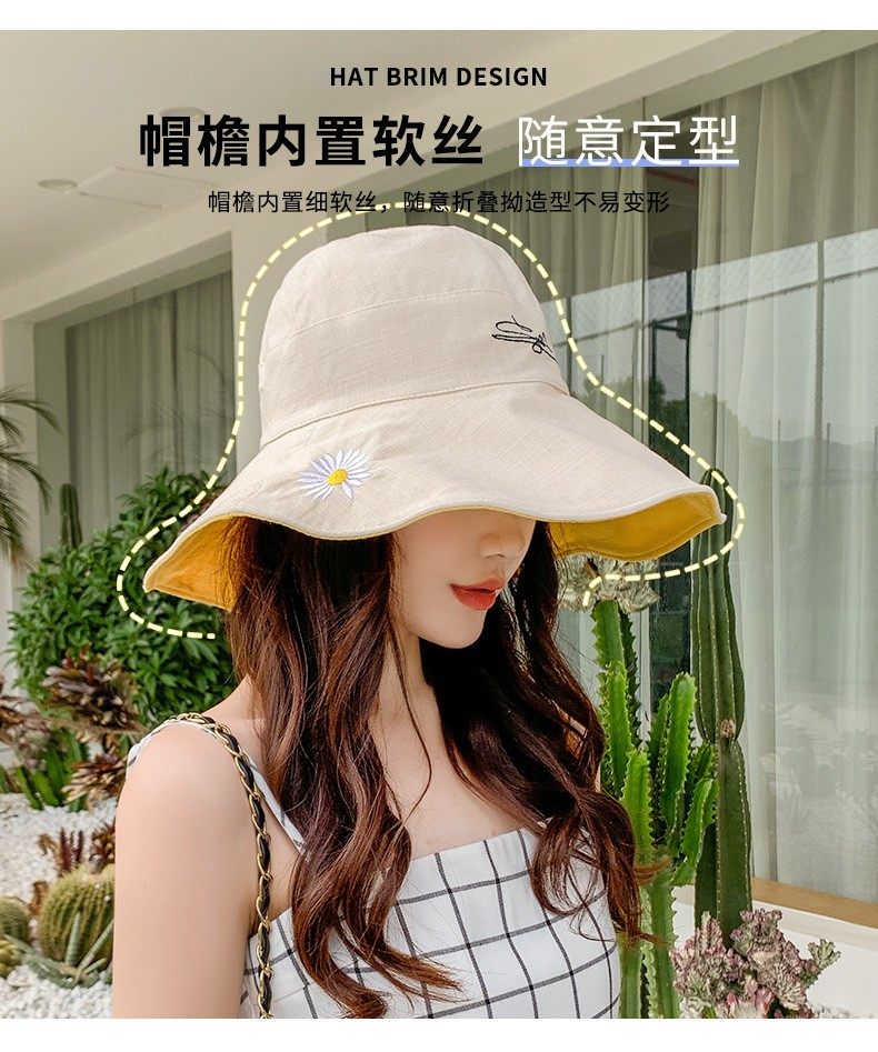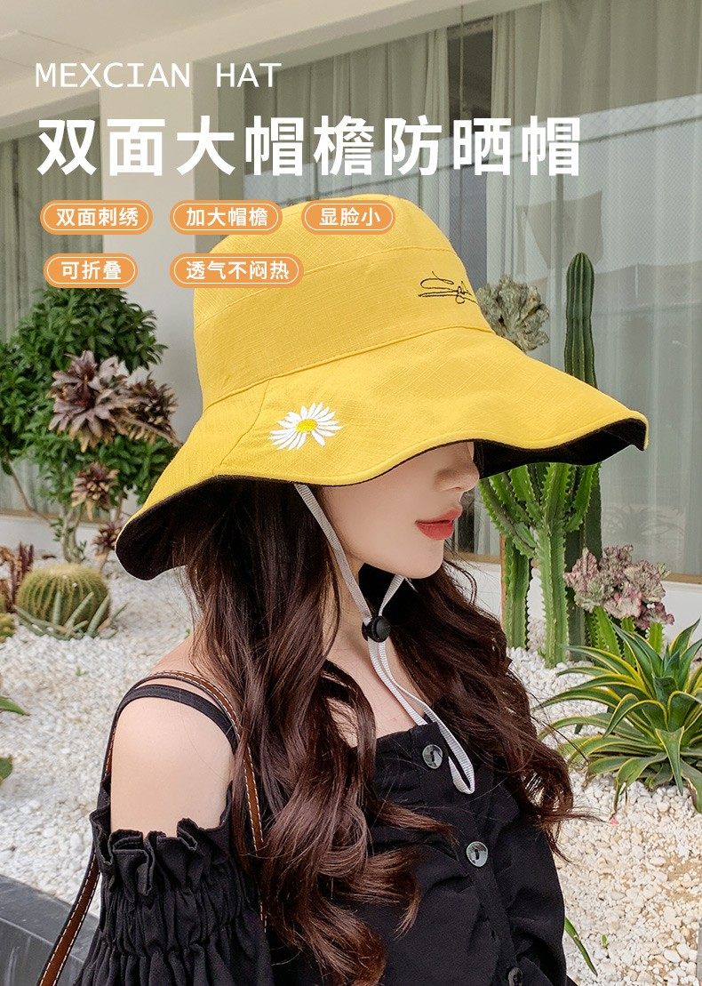 여름용 여성용 자외선 차단 모자, 다용도 자외선 차단 썬햇, 넓은 챙, 일본식 작은 데이지 양면 버킷햇
