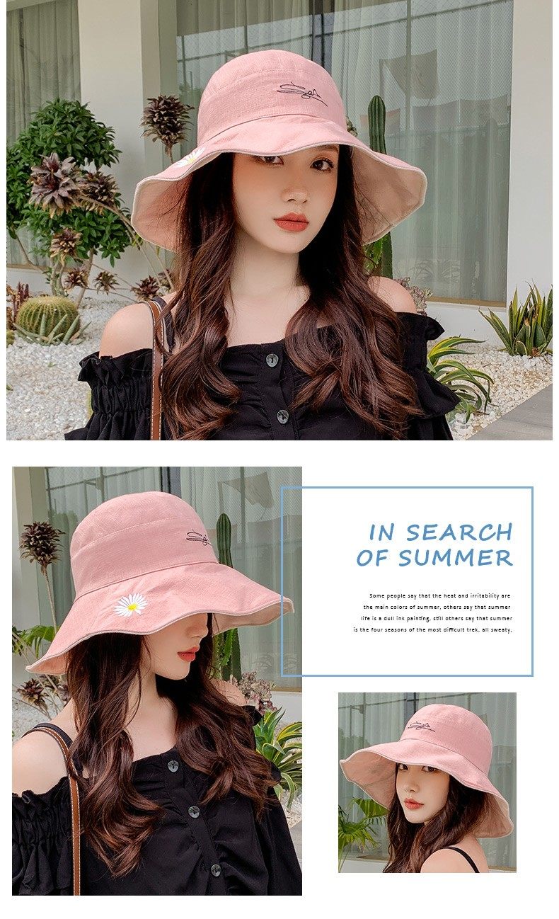 여름용 여성용 자외선 차단 모자, 다용도 자외선 차단 썬햇, 넓은 챙, 일본식 작은 데이지 양면 버킷햇스토어 가기