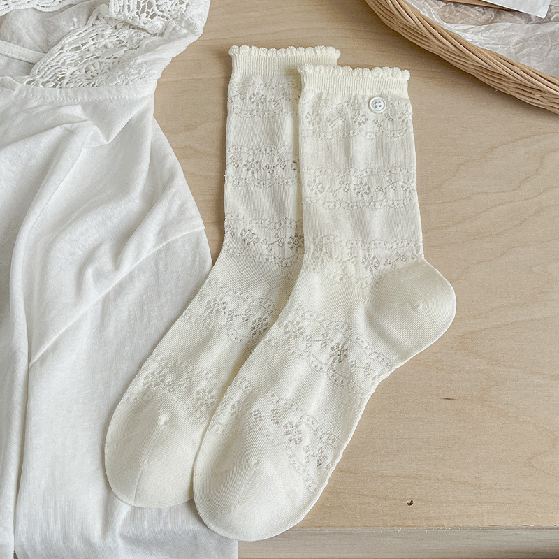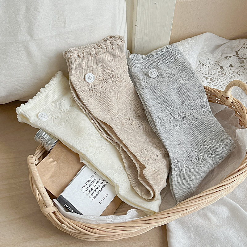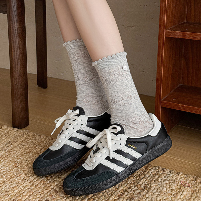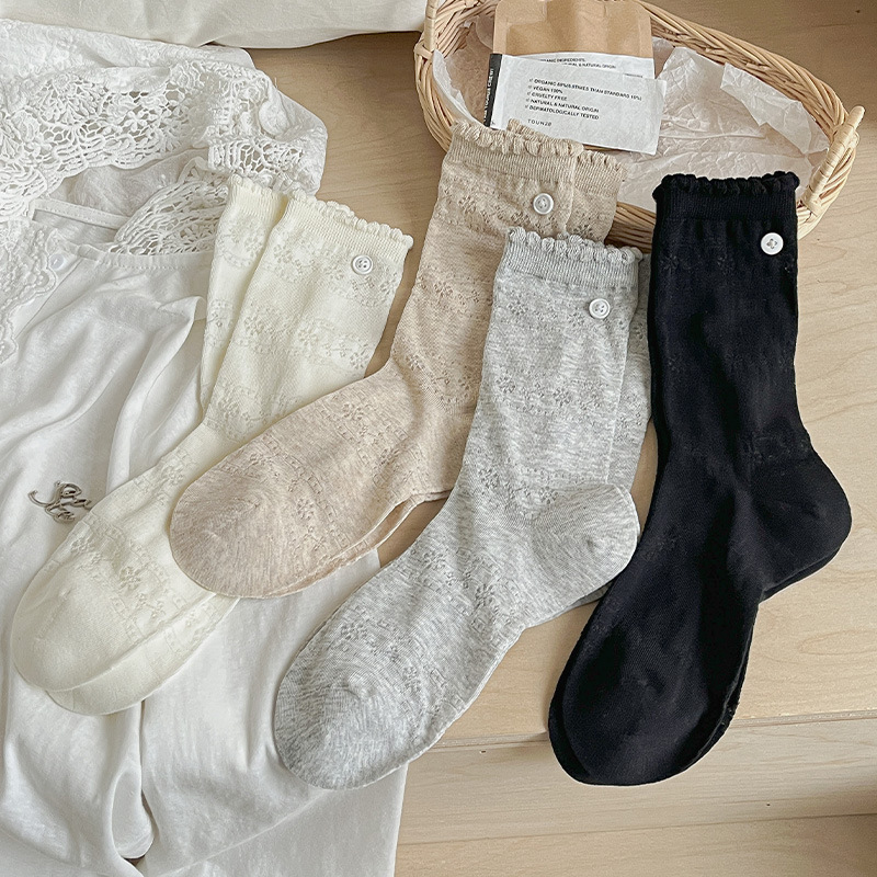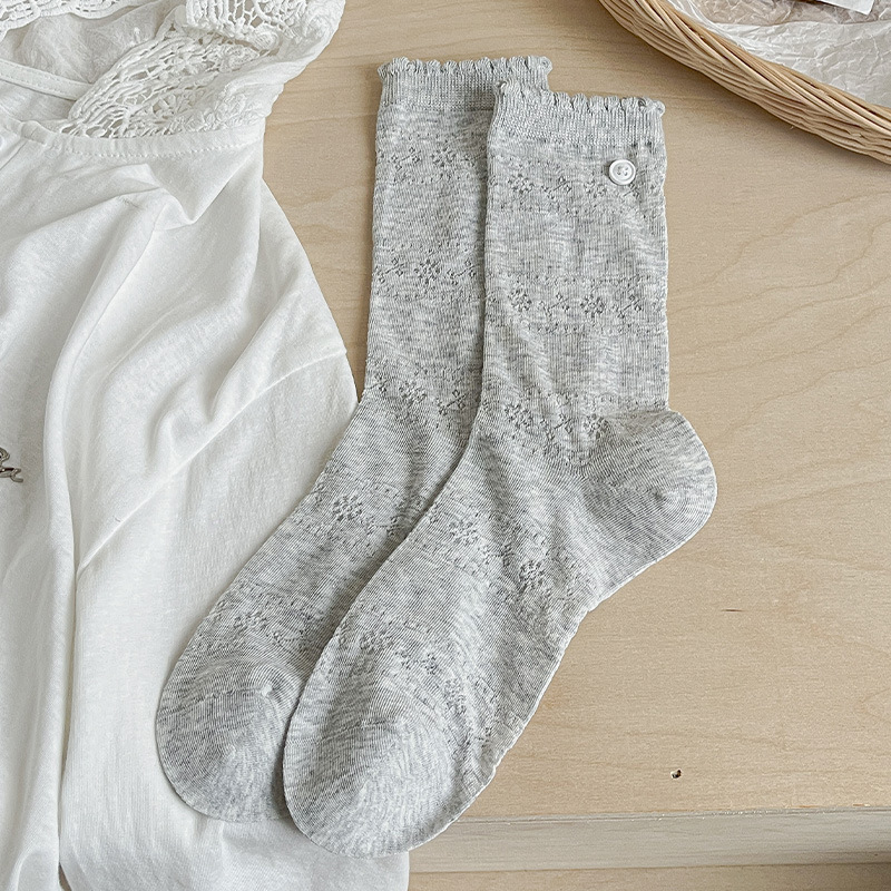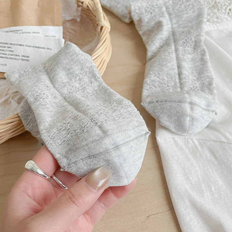 일본식 회색 양말 여성 봄과 여름 얇은 중공 메쉬 통기성 단색 튜브 양말 작은 가죽 신발 스타킹