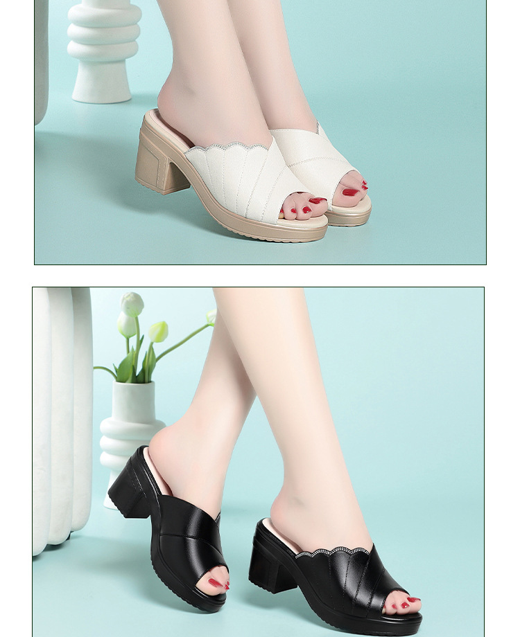 공장 도매 여성용 샌들 하이힐 슬리퍼 여성의 두꺼운 굽 여름 새로운 패션 조커 겉옷 생선 입 한 단어 슬리퍼