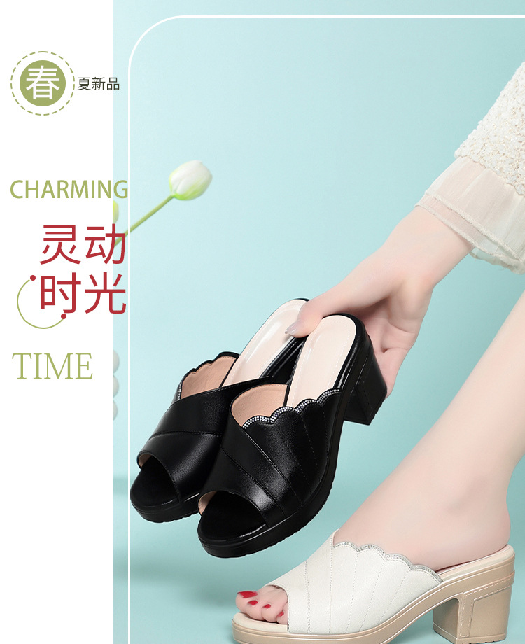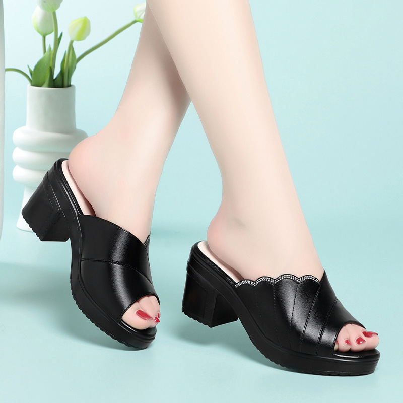공장 도매 여성용 샌들 하이힐 슬리퍼 여성의 두꺼운 굽 여름 새로운 패션 조커 겉옷 생선 입 한 단어 슬리퍼스토어 가기
