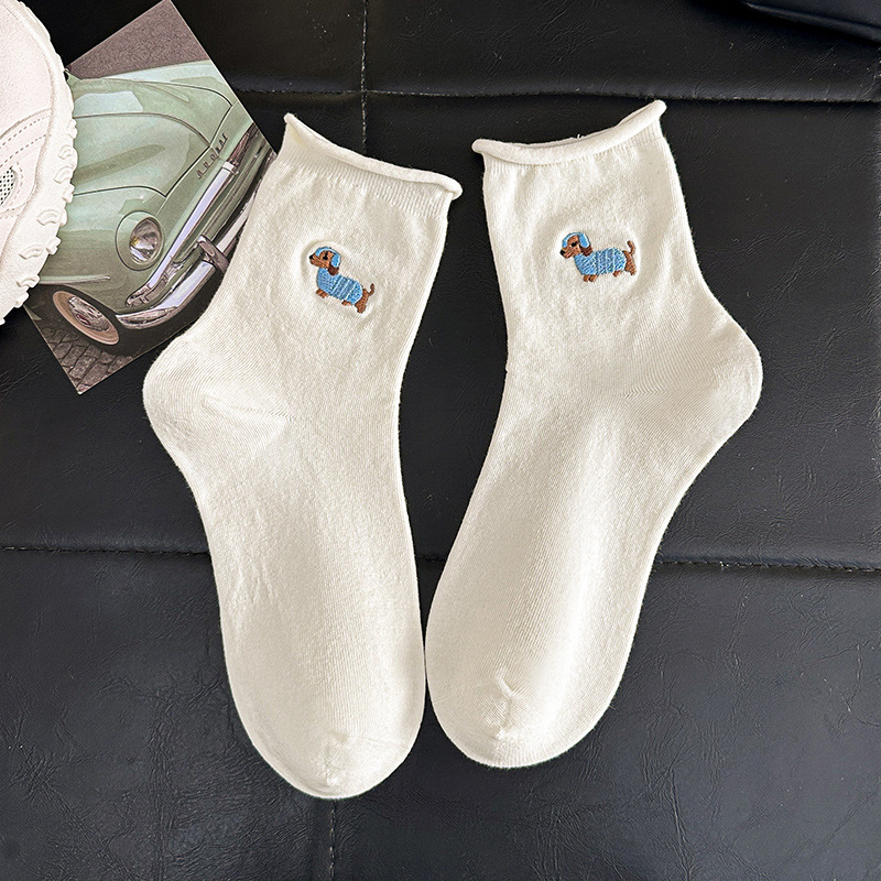 봄과 여름 양말 여성 소녀 뼈없는 양말 귀여운 닥스 훈트 개 강아지 강아지 강아지 자수 만화 일본 시리즈 컬링면 양말스토어 가기