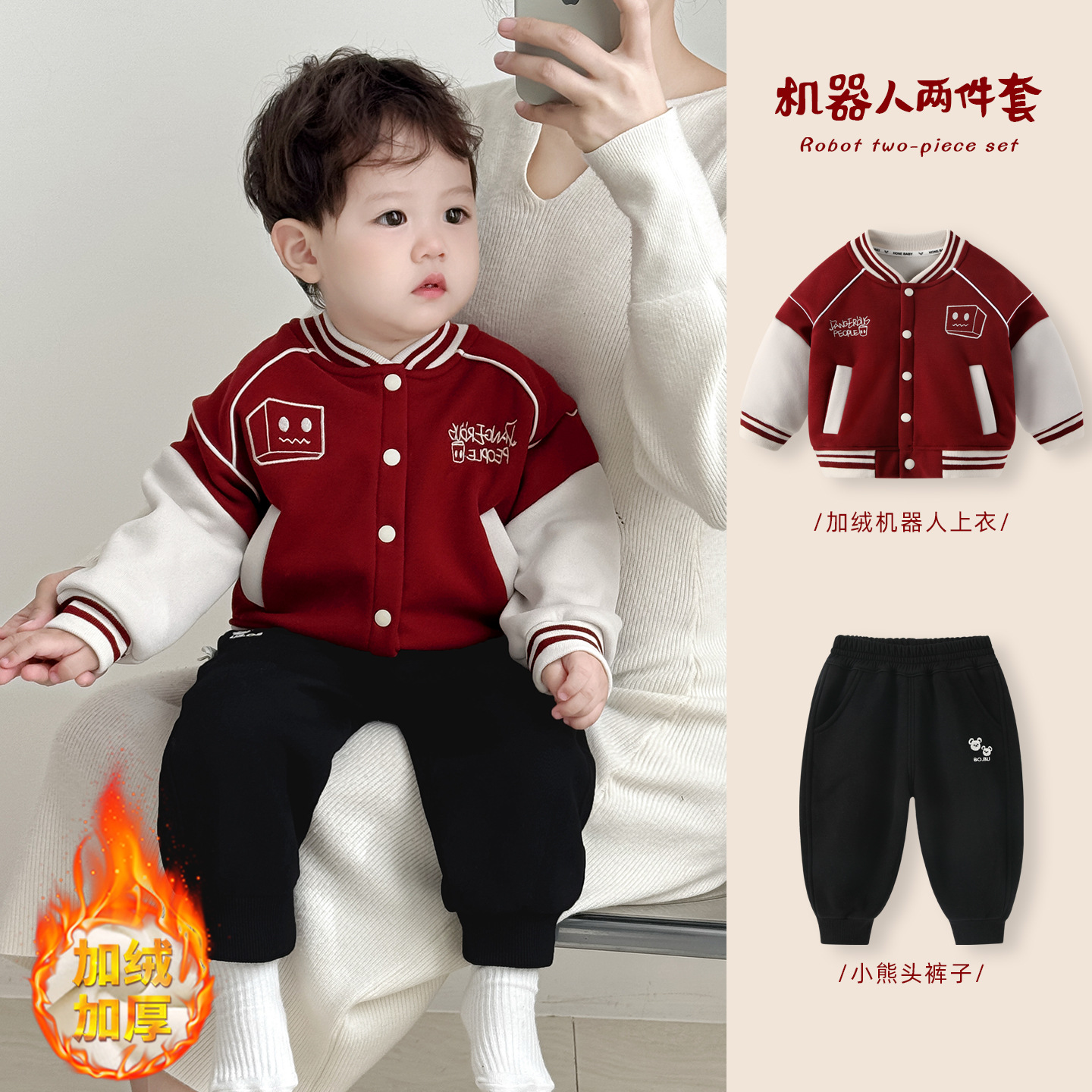 아기 재킷 2025 신상 가을 겨울 남아 캐주얼 야구복 상의 남아 두꺼운 스웨트셔츠 겨울옷
