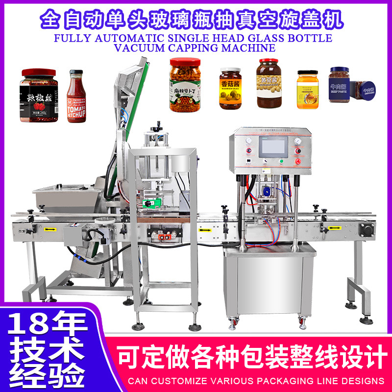 완전 자동 단일 헤드 유리 병 진공 캡핑 기계, 소스 조리된 야채 병에 담긴 칠리 소스 통조림 진공 씰링 기계