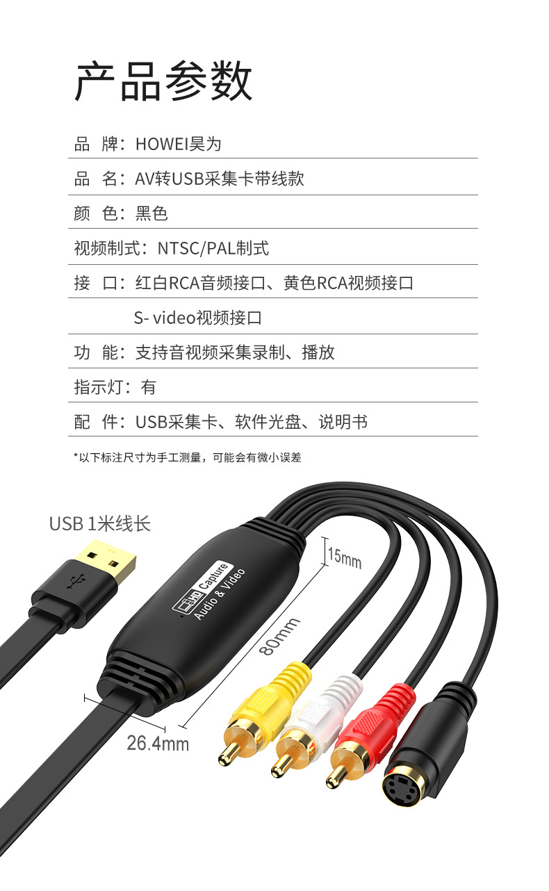국경 간 핫 세일 CVBS + S-Video-USB 비디오 신호 이미지 캡처 카드 1080P 모니터링 캡처 카드