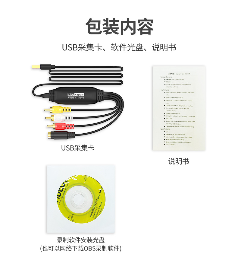 국경 간 핫 세일 CVBS + S-Video-USB 비디오 신호 이미지 캡처 카드 1080P 모니터링 캡처 카드스토어 가기