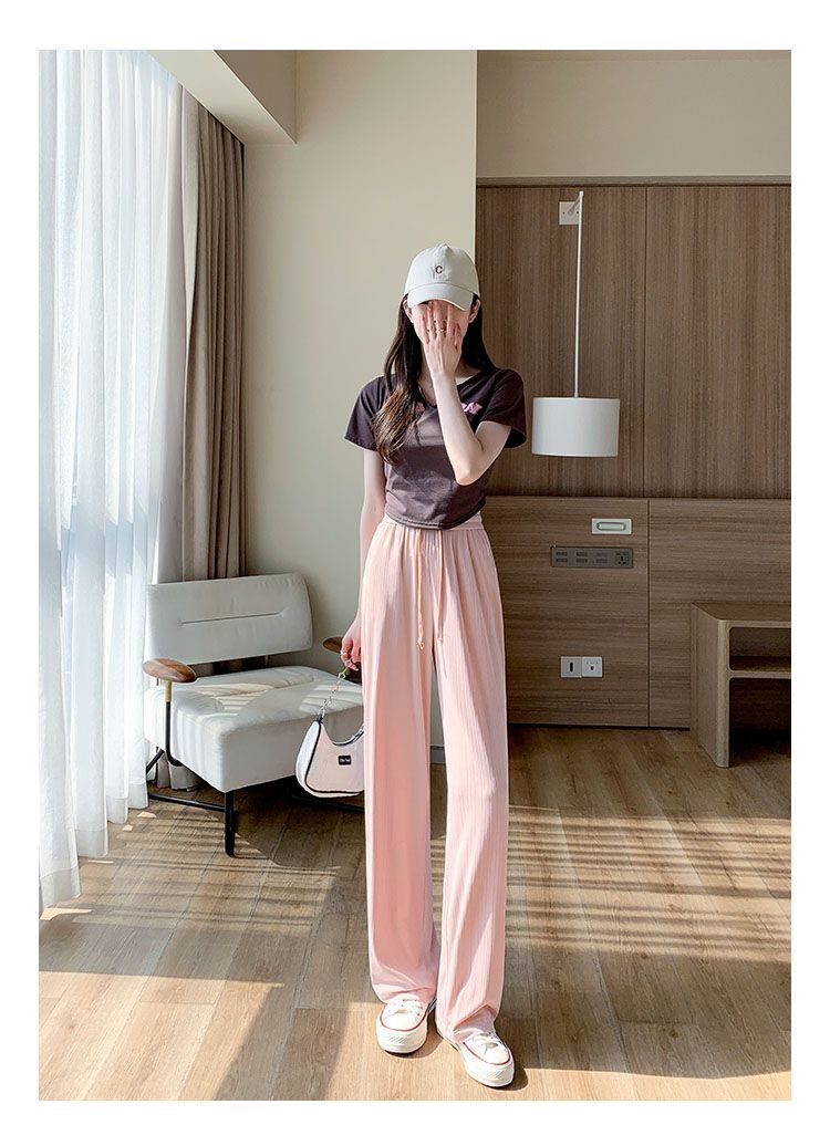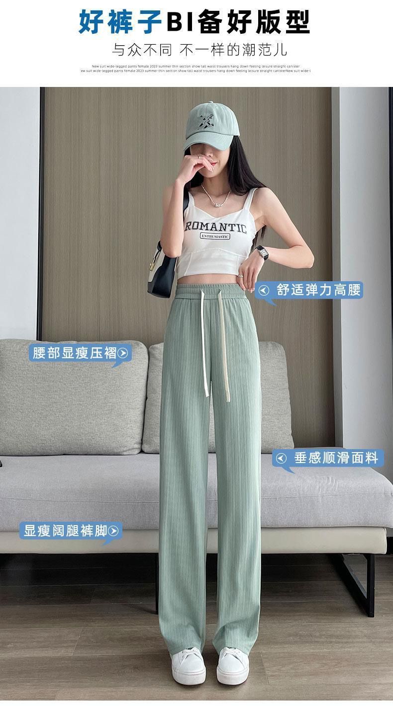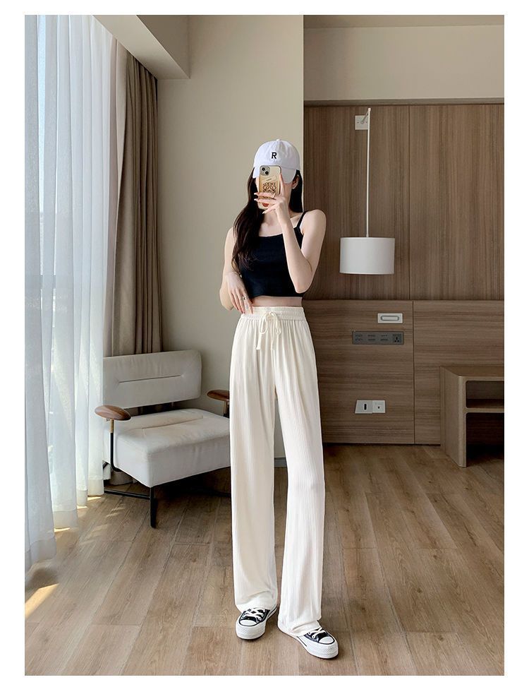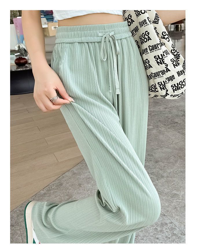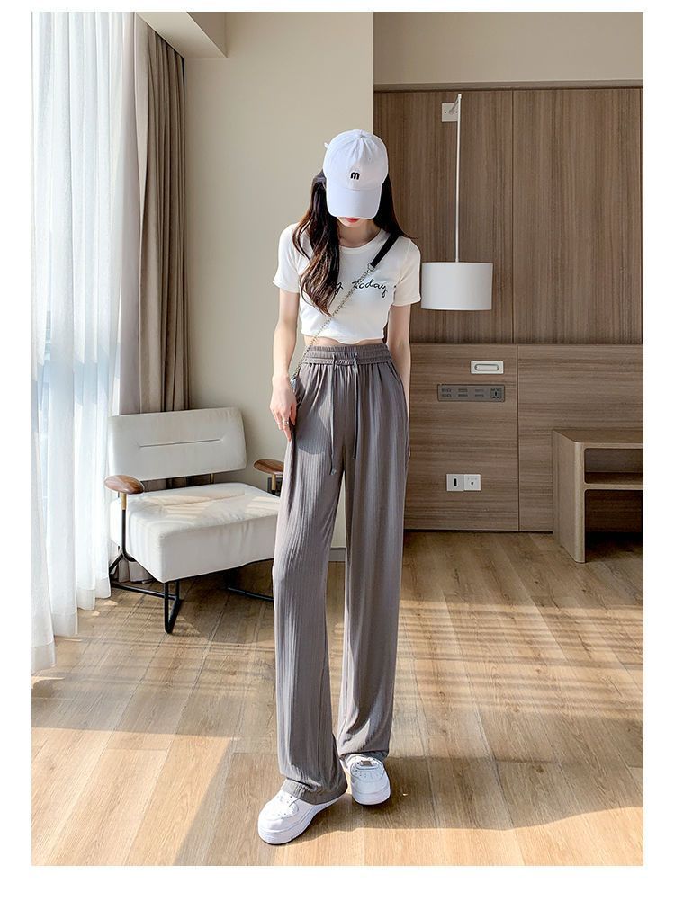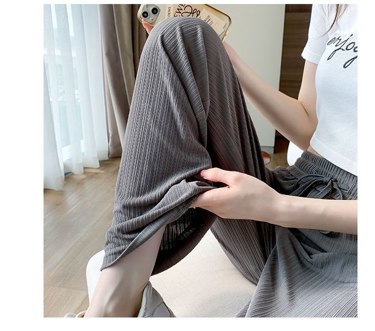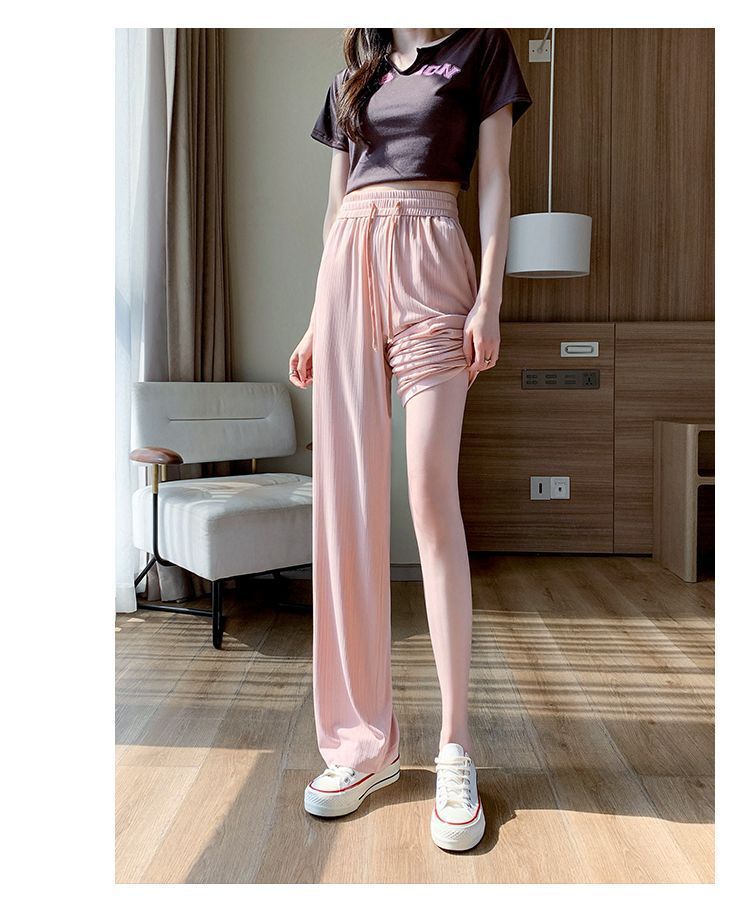 선스크린 아이스 실크 넓은 다리 바지 여름 얇은 여성 바지 높은 허리 투약 똑바로 느슨한 슬리밍 쿨 캐주얼 바지스토어 가기