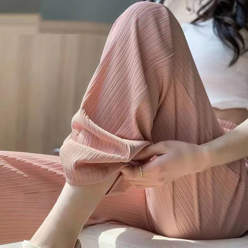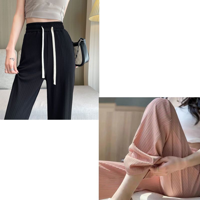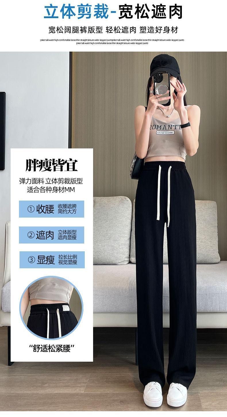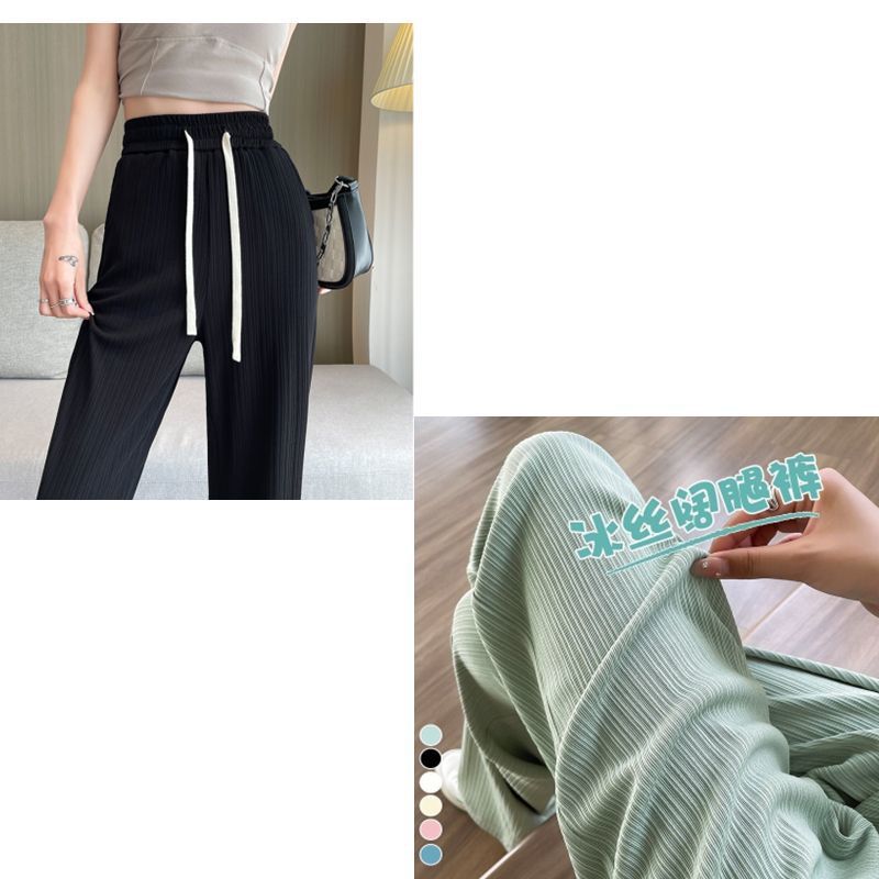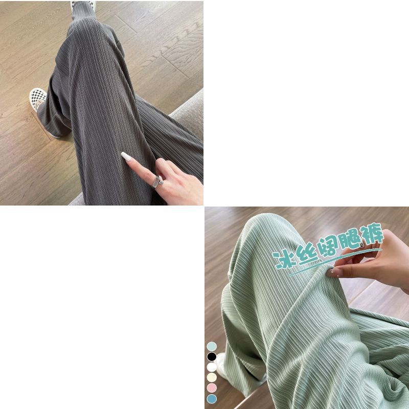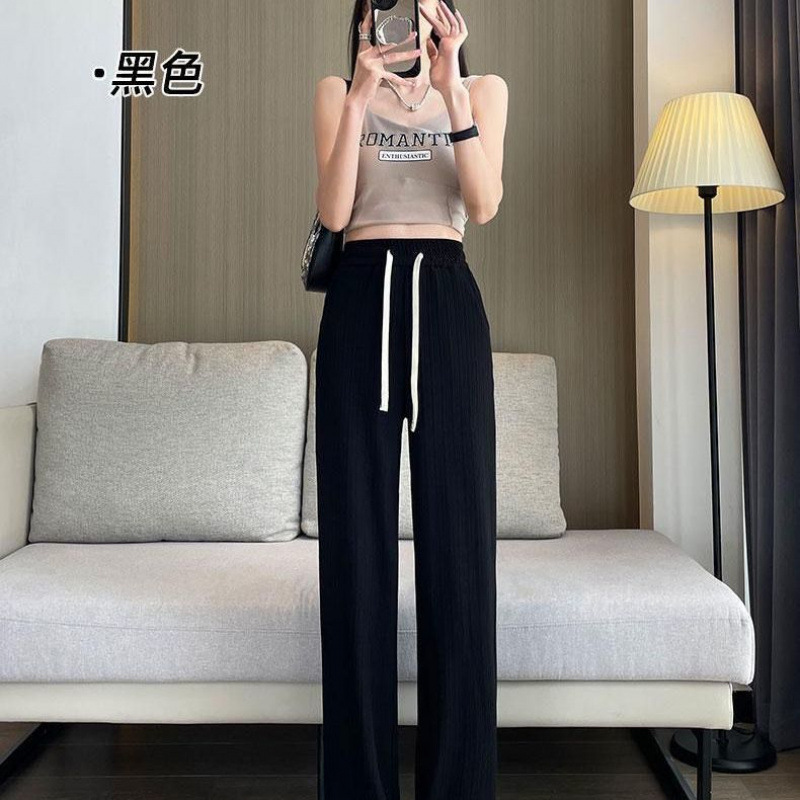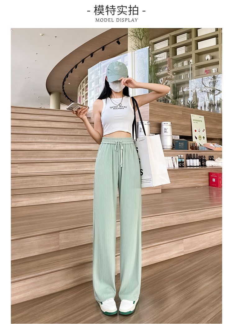 선스크린 아이스 실크 넓은 다리 바지 여름 얇은 여성 바지 높은 허리 투약 똑바로 느슨한 슬리밍 쿨 캐주얼 바지스토어 가기
