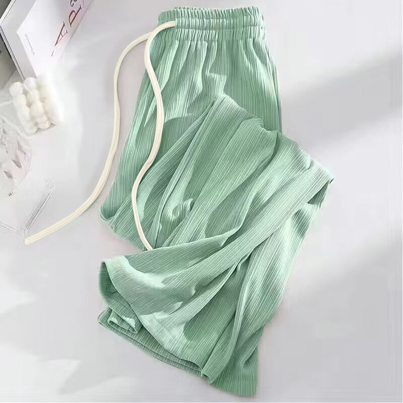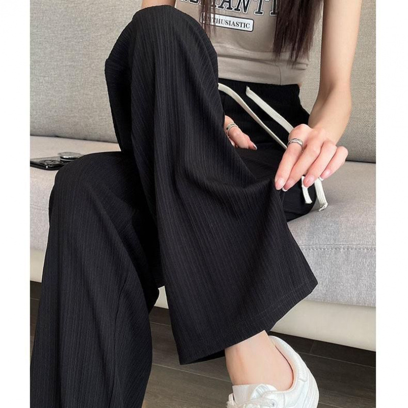 선스크린 아이스 실크 넓은 다리 바지 여름 얇은 여성 바지 높은 허리 투약 똑바로 느슨한 슬리밍 쿨 캐주얼 바지