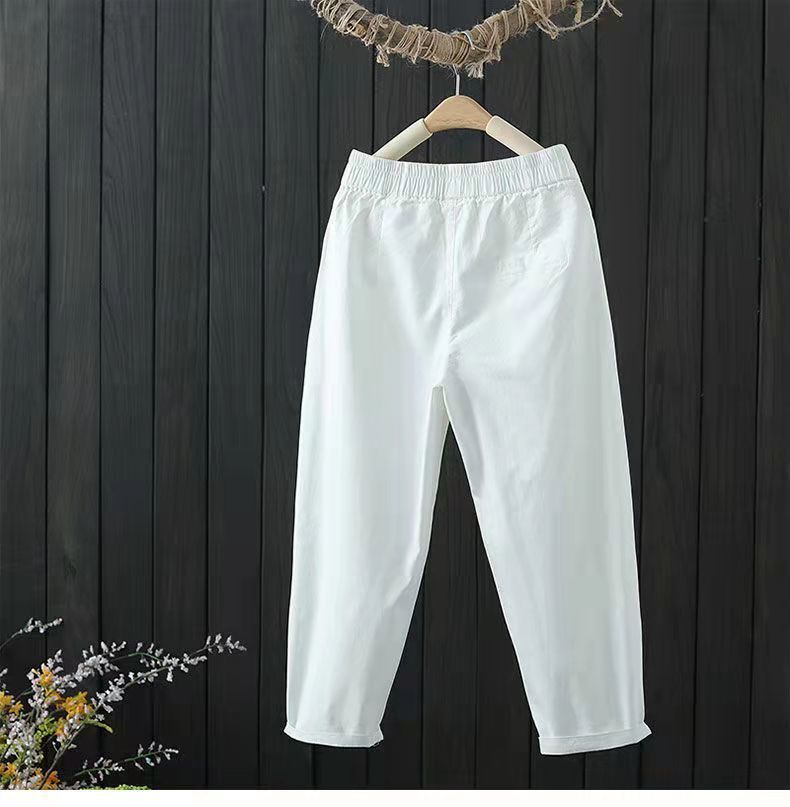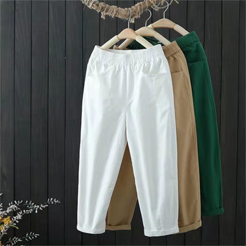 여름 플러스 사이즈 컬러 캐주얼 바지 느슨한 허리 얇은 자른 바지와 여성용 느슨한 슬리밍 할렌 바지스토어 가기