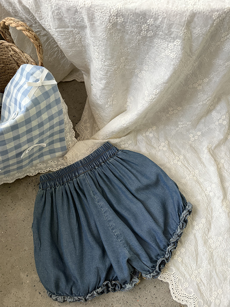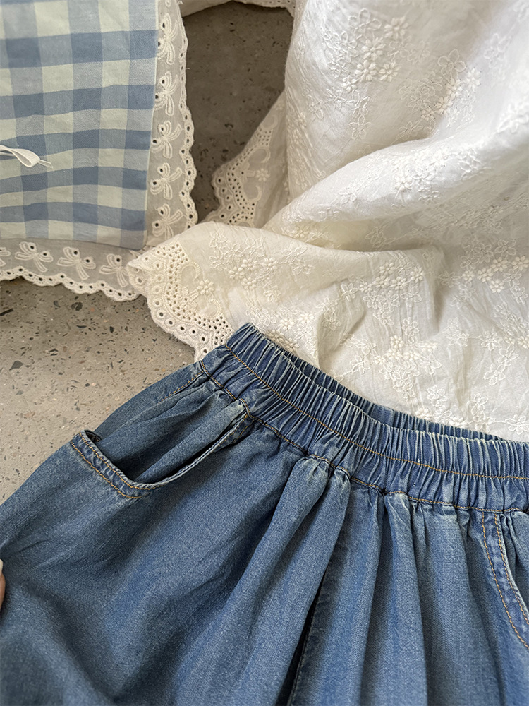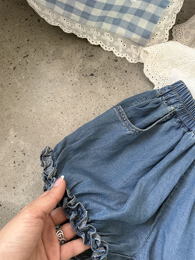 소녀 한국식 반바지 2025 년 여름 새 어린이 서양식 목회 올매치 우드 이어 소프트 데님 반바지