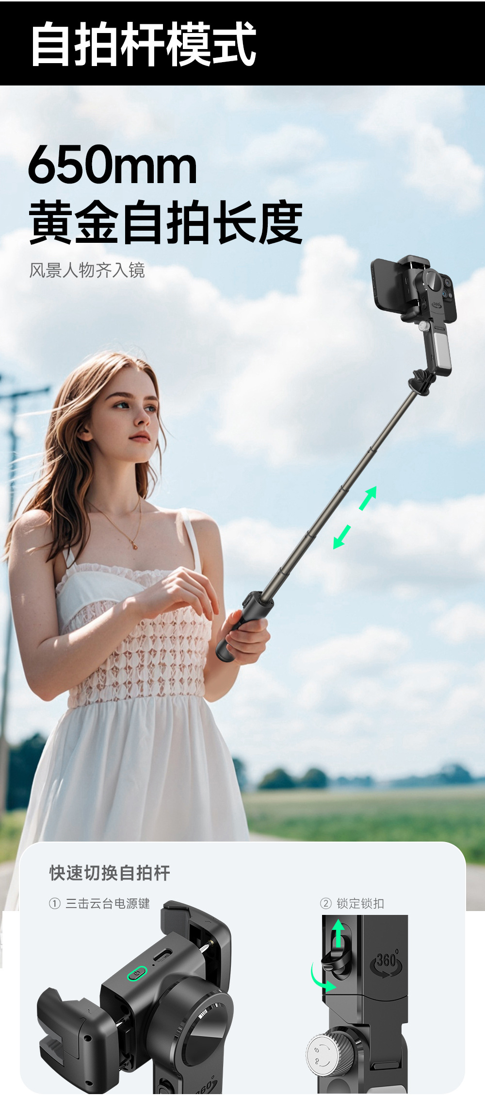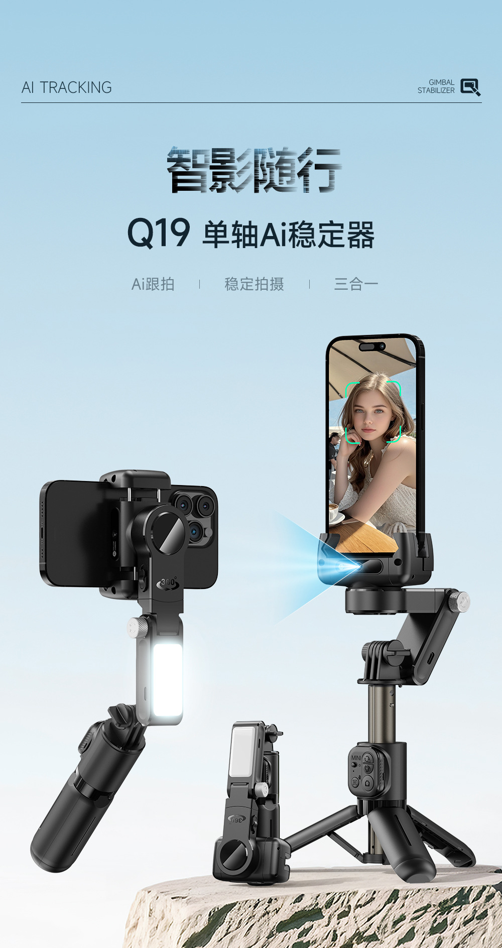 CYKE 휴대폰 안정기 얼굴 추적 핸드헬드 짐벌 셀카봉 휴대용 라이브 방송 휴대폰 거치대 데스크탑 NCC스토어 가기