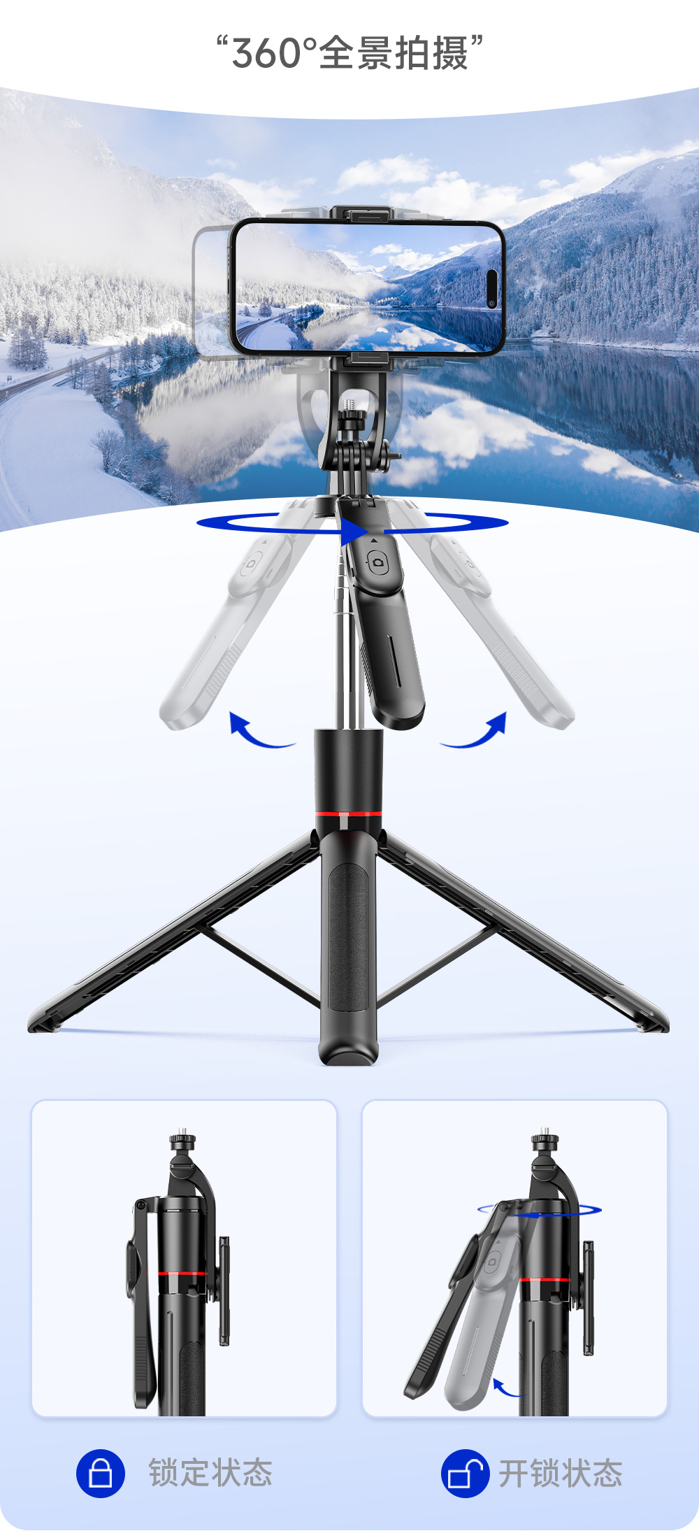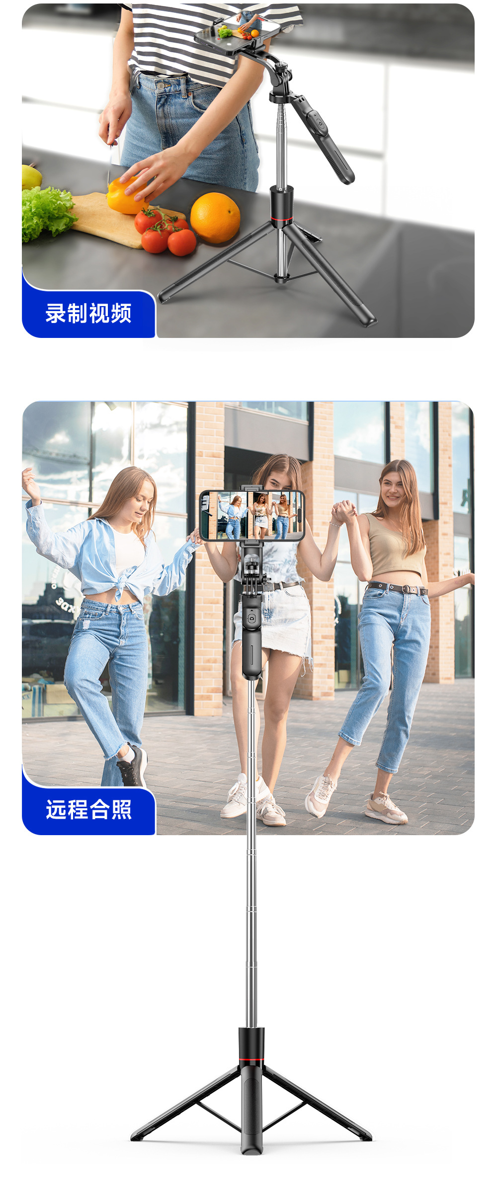 블루투스 핸드 헬드 짐벌과 셀카 아티팩트 블루투스 휴대 전화 브래킷 채우기 조명이있는 국경 간 셀카 스틱 삼각대