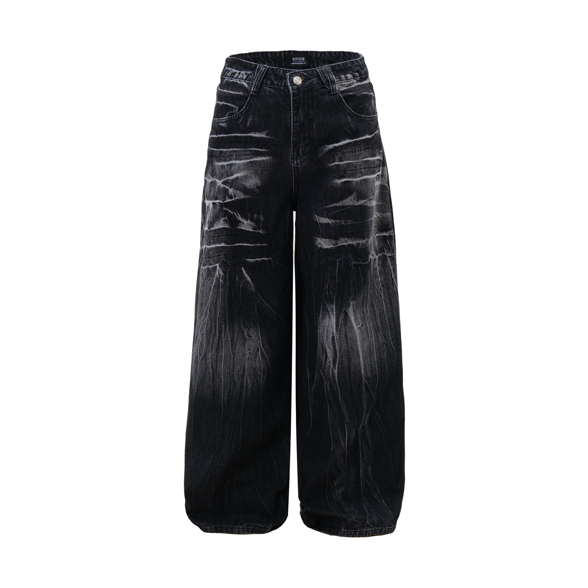 아메리칸 레트로 클린핏 워싱 디스트레스드 청바지 남성용 니치 라이트닝 패턴 바이브 루즈 와이드 레그 롱 팬츠