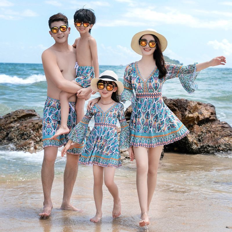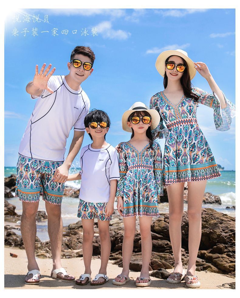 부모-자녀 수영복 분할 보수적 인 어린이 수영복 휴일 장비 해변 수영복 3 종 세트 부모-자녀 세트스토어 가기