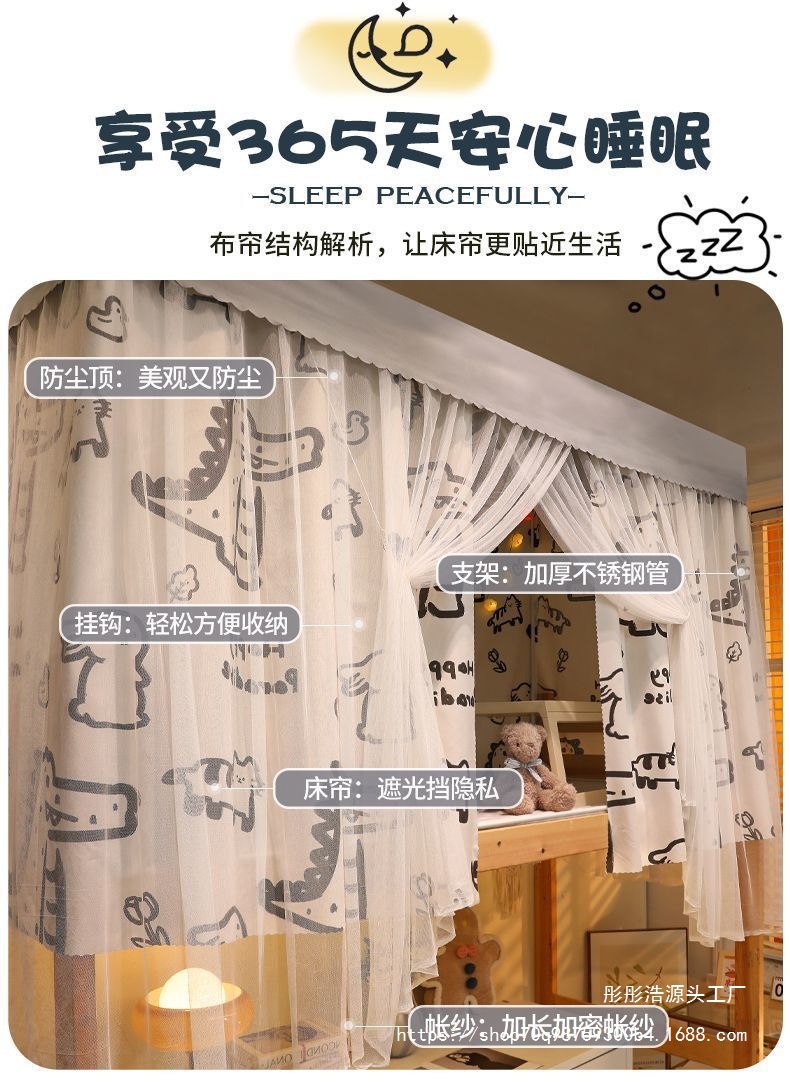 스탠드가 있는 모기장, 침대 커튼, 일체형 학생 기숙사 차광 커튼, 이층 침대, 범용 일체형 방지 제조업체스토어 가기