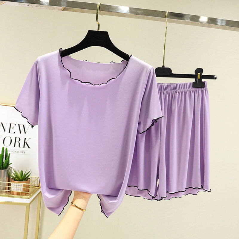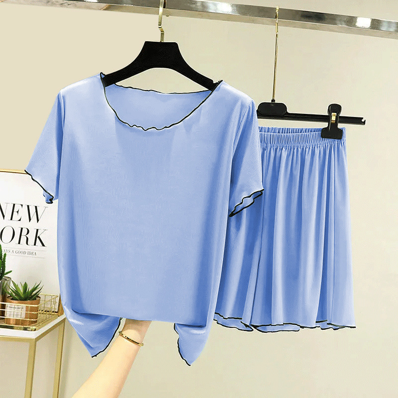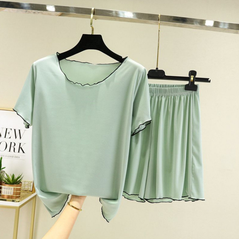 아이스 실크 세트 여성용 여름 투피스 세트 플러스 사이즈 느슨한 100.00kg 뚱뚱한 캐주얼 스포츠 홈 잠옷스토어 가기