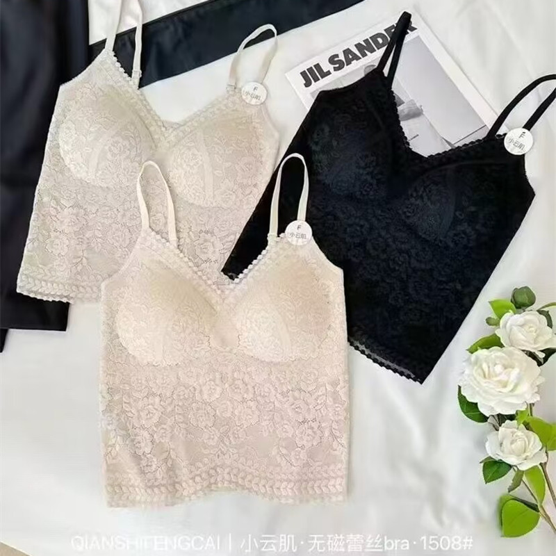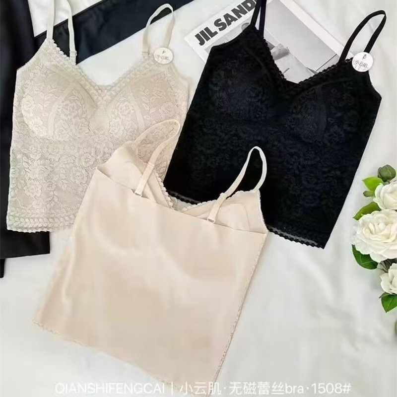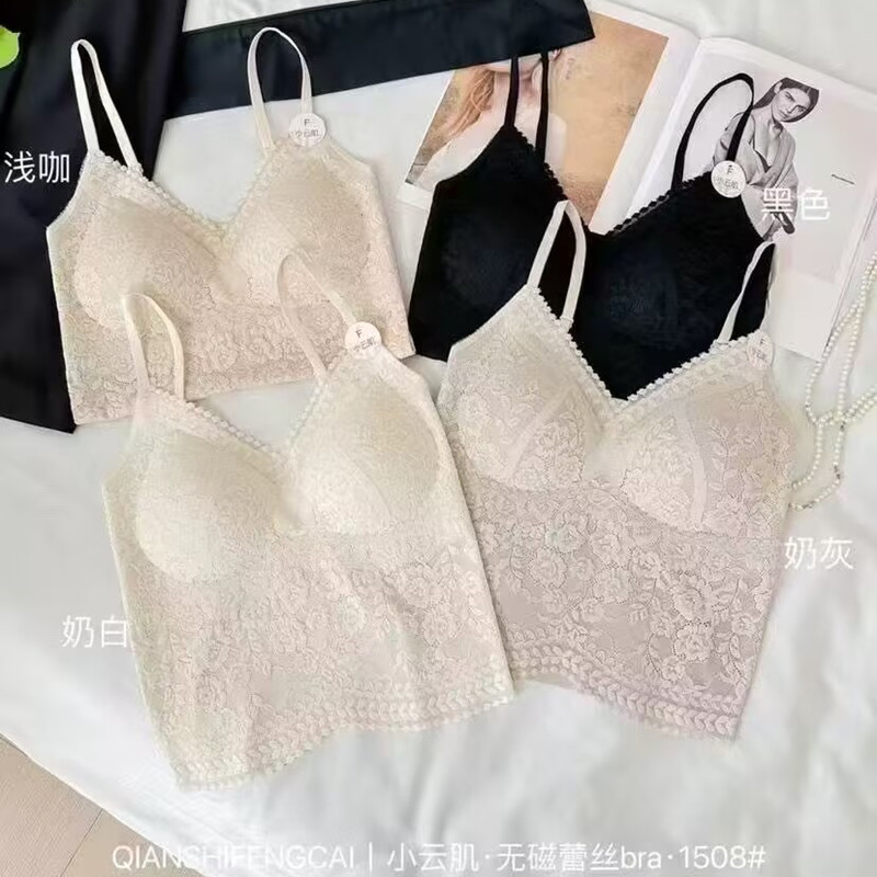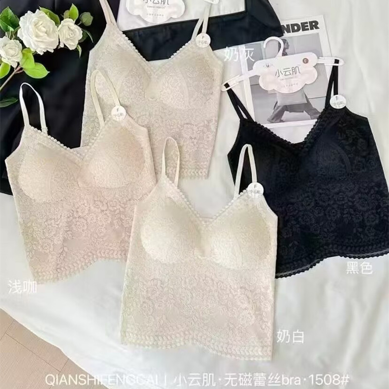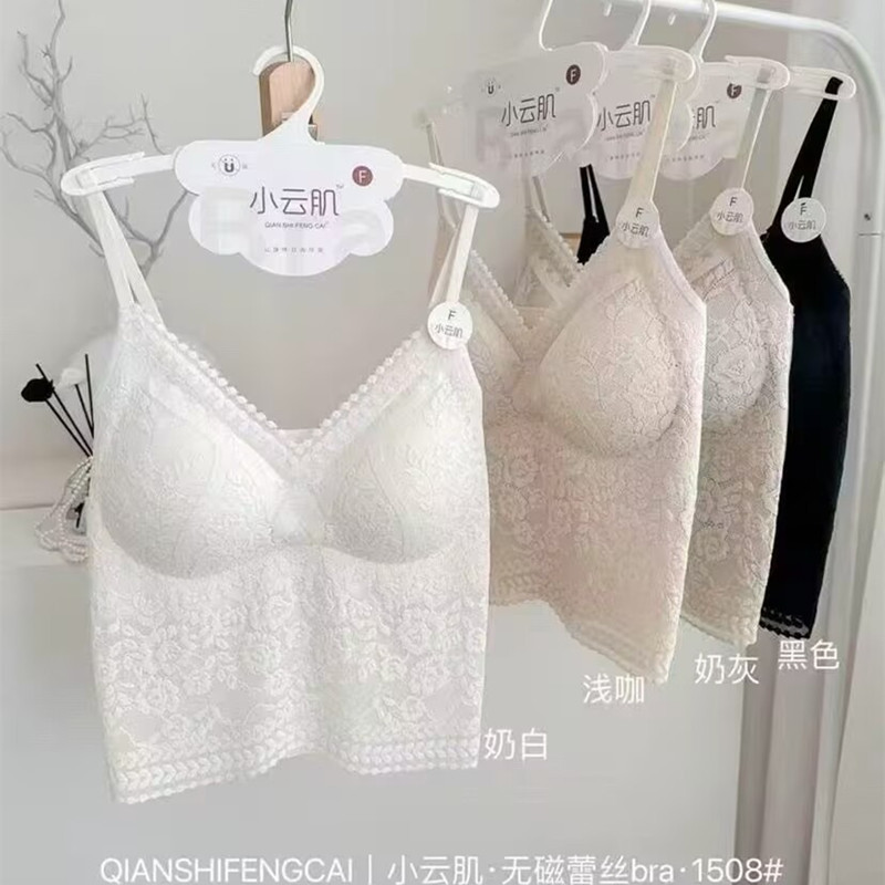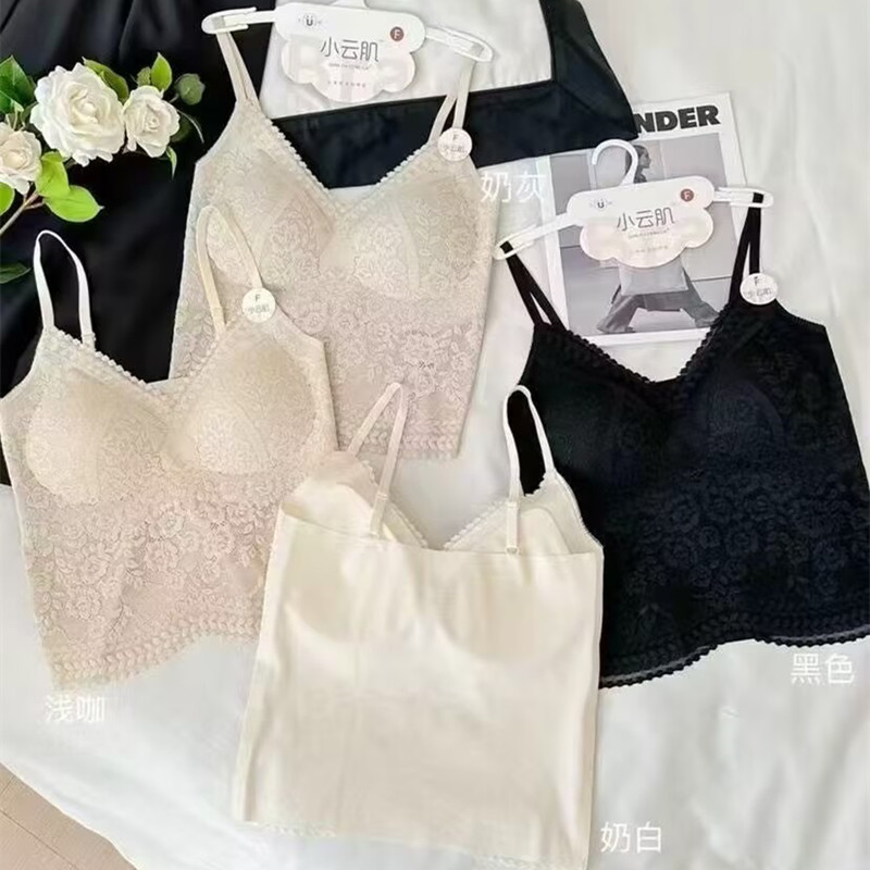 레이스 브이넥 슬림 숄더 스트랩 미백 미드기장 탑 여성용 고정 코르셋 팬티 속옷 브라 아우터 조끼스토어 가기