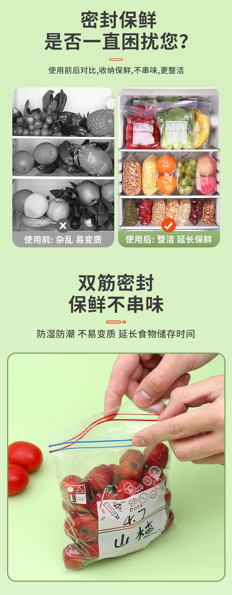 신선한 가방 식품 등급 신선한 유지 가방 더블 힘줄 밀봉 가정용 냉장고 냉동 특수 플라스틱 시리얼 저장 가방스토어 가기