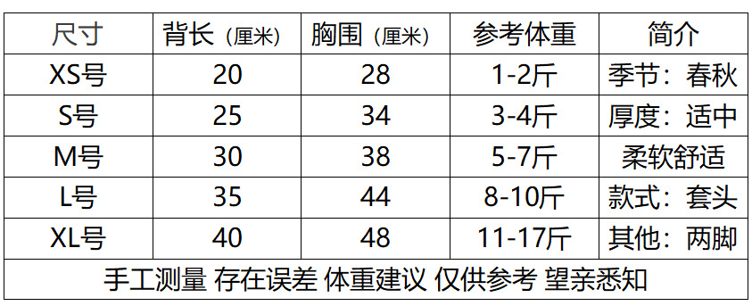 • XS 등길이 20cm (권장 0.5-1.0kg)