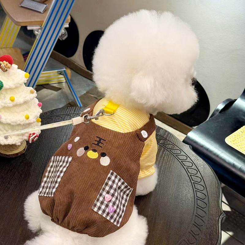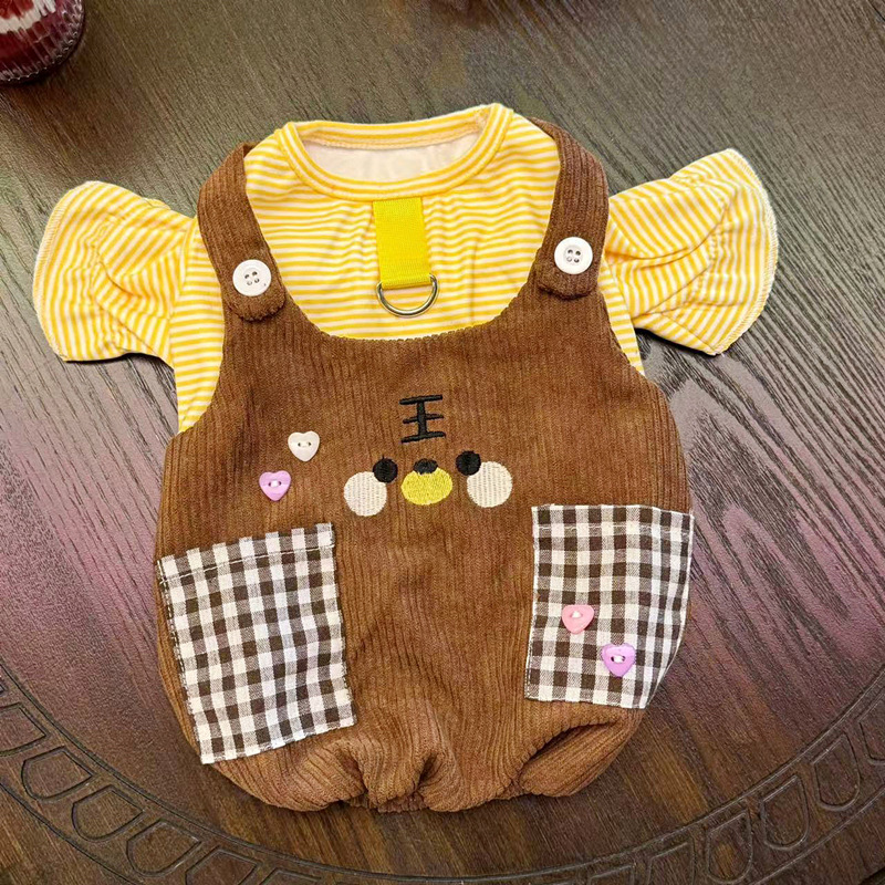 개 옷 봄과 여름 얇은 가짜 투피스 포켓 스웨터 안티 헤어 애완 동물 테디 팬더 고양이 작은 개스토어 가기